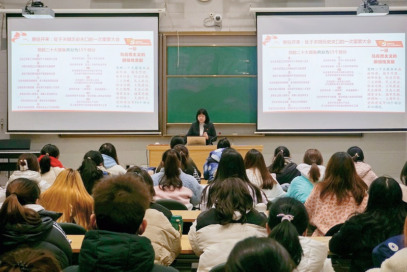 殷校长的报告宣讲振奋人心,获得在场师生的阵阵掌声,纷纷表示要以习近平新时代中国特色社会主义思想为指导,深入贯彻落实党的二十大精神,始终牢记习近平总书记的嘱托,在新时代新征程上不断创造新成绩,为建设富强民主文明和谐美丽的社会主义现代化强国而不懈奋斗!