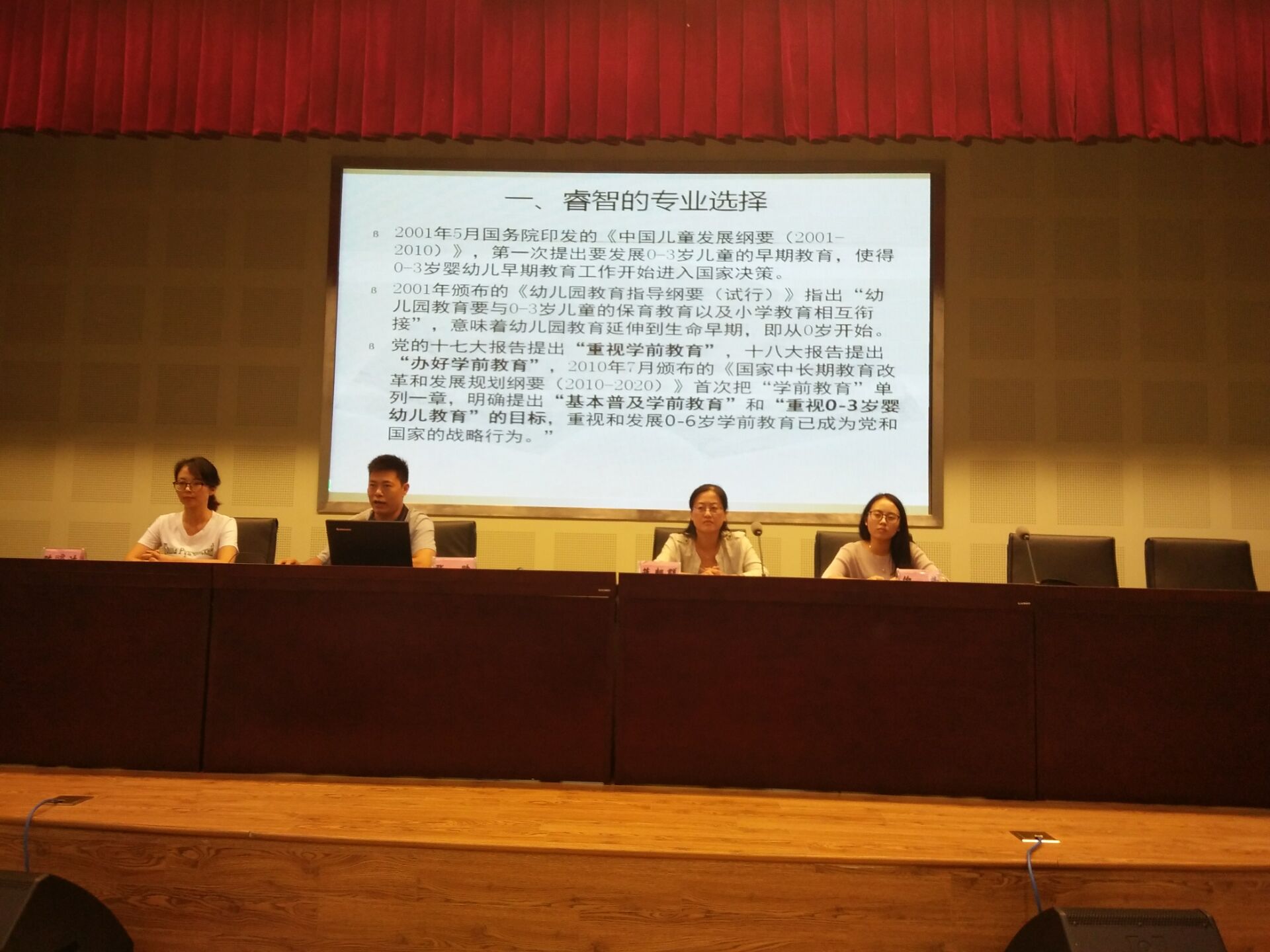 9月9日,我校终于迎来了17级新生,我校志愿者热情迎接积极配合。上午报道完毕后,下午1点,学前二系17级新生家长会于报告厅准时举行。参会的有我校学前二系张晗主任、蒋朝群老师、陈彧洁老师和17级辅导员倪莹老师,大会由陈彧洁老师主持开始。