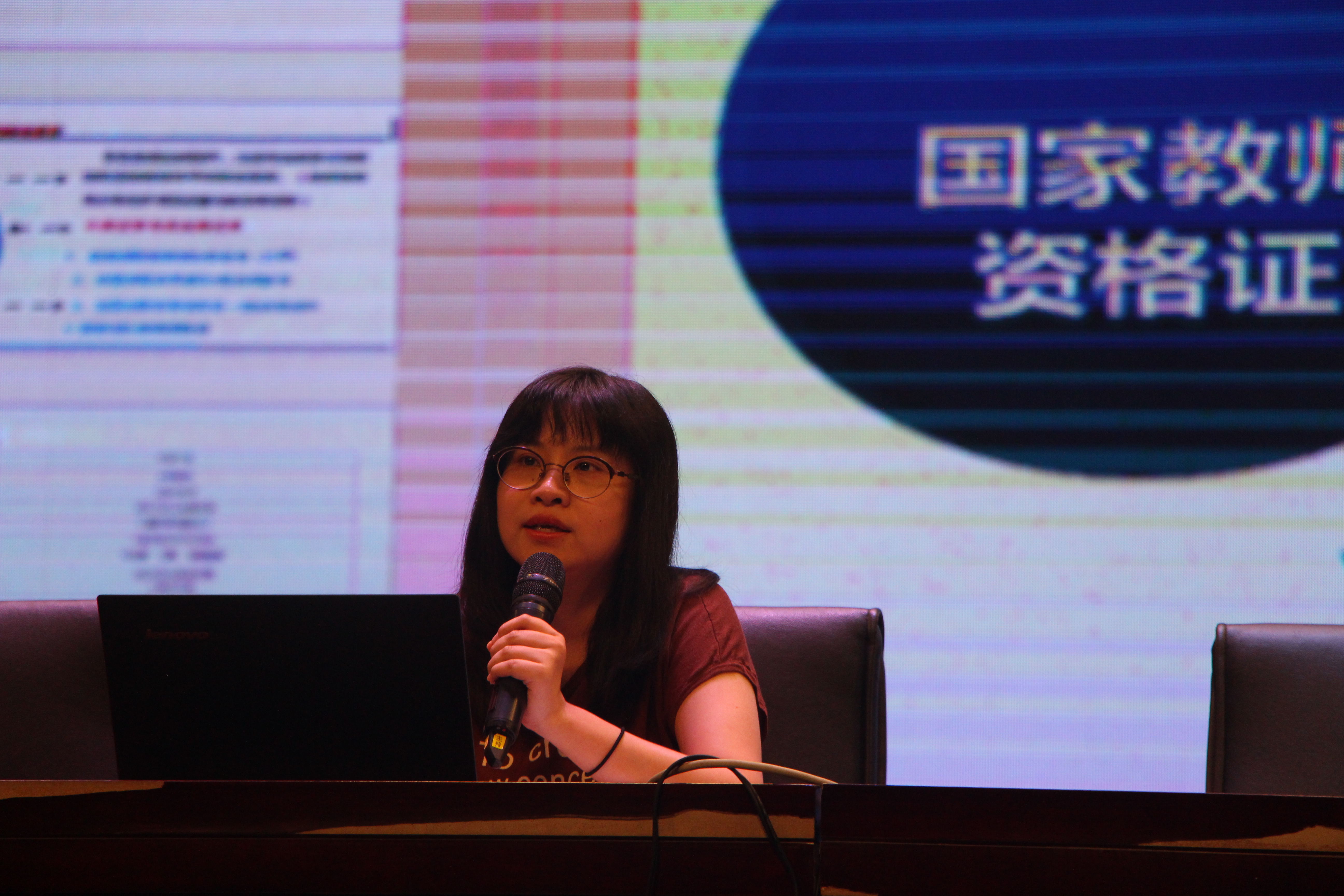 学前二系副系主任杨俐介绍了有关三年制高专人才培养方案的政策依据、专业培养的目标和毕业要求,其中着重强调学校教育应重视师德为先。杨主任还简要介绍了课程体系,专业主要课程和内容及个人规划。