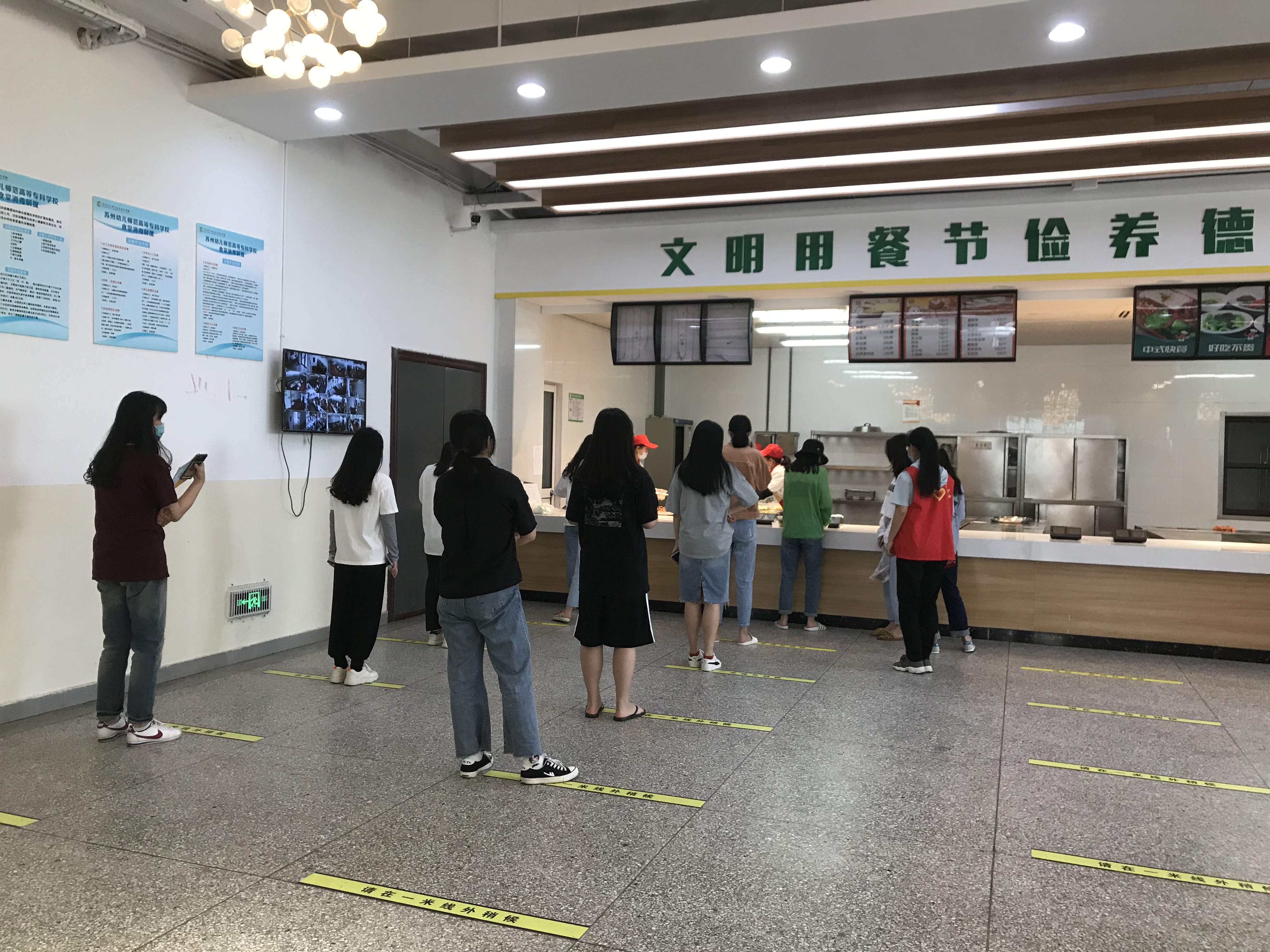 出于安全考虑,学校采用错时就餐的方式。早餐提供简单品种,午餐实行统一套餐,晚餐保留原有种类不变。即便是第二周,志愿者们毫不松懈,仍然坚守在自己的岗位上,为学校献出自己的绵薄之力,提醒同学们间隔一米有序排队,文明就餐。