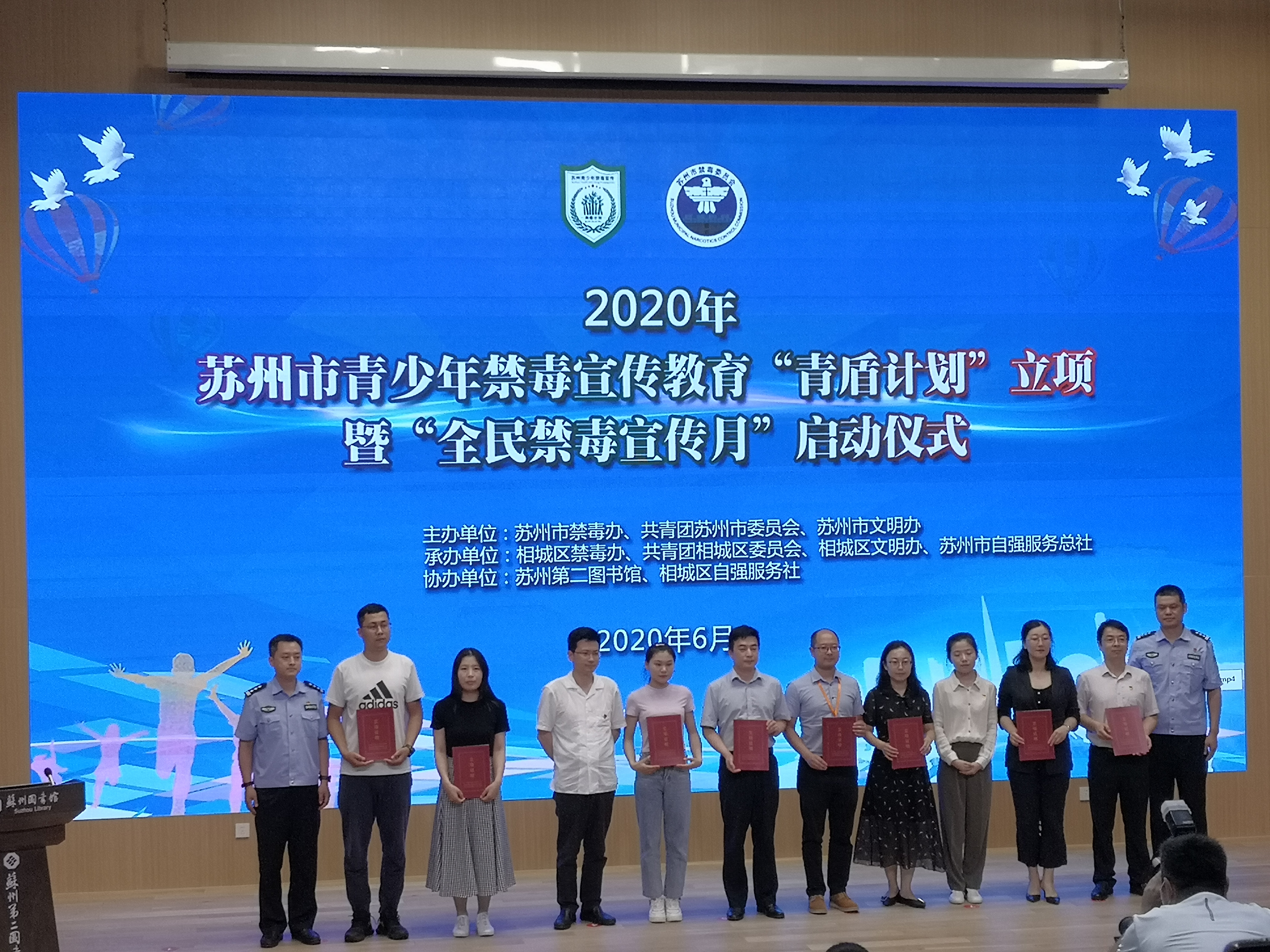 为积极响应习近平总书记就禁毒工作做出的“要坚持关口前移,预防为先,重点针对青少年等群体,深入开展禁毒预防教育,在全社会形成自觉抵制毒品的浓厚氛围。”重要指示。苏州市青少年禁毒宣传教育“青盾”计划立项暨“全名宣传禁毒月”启动仪式于2020年6月4日在苏州市第二图书馆举行。