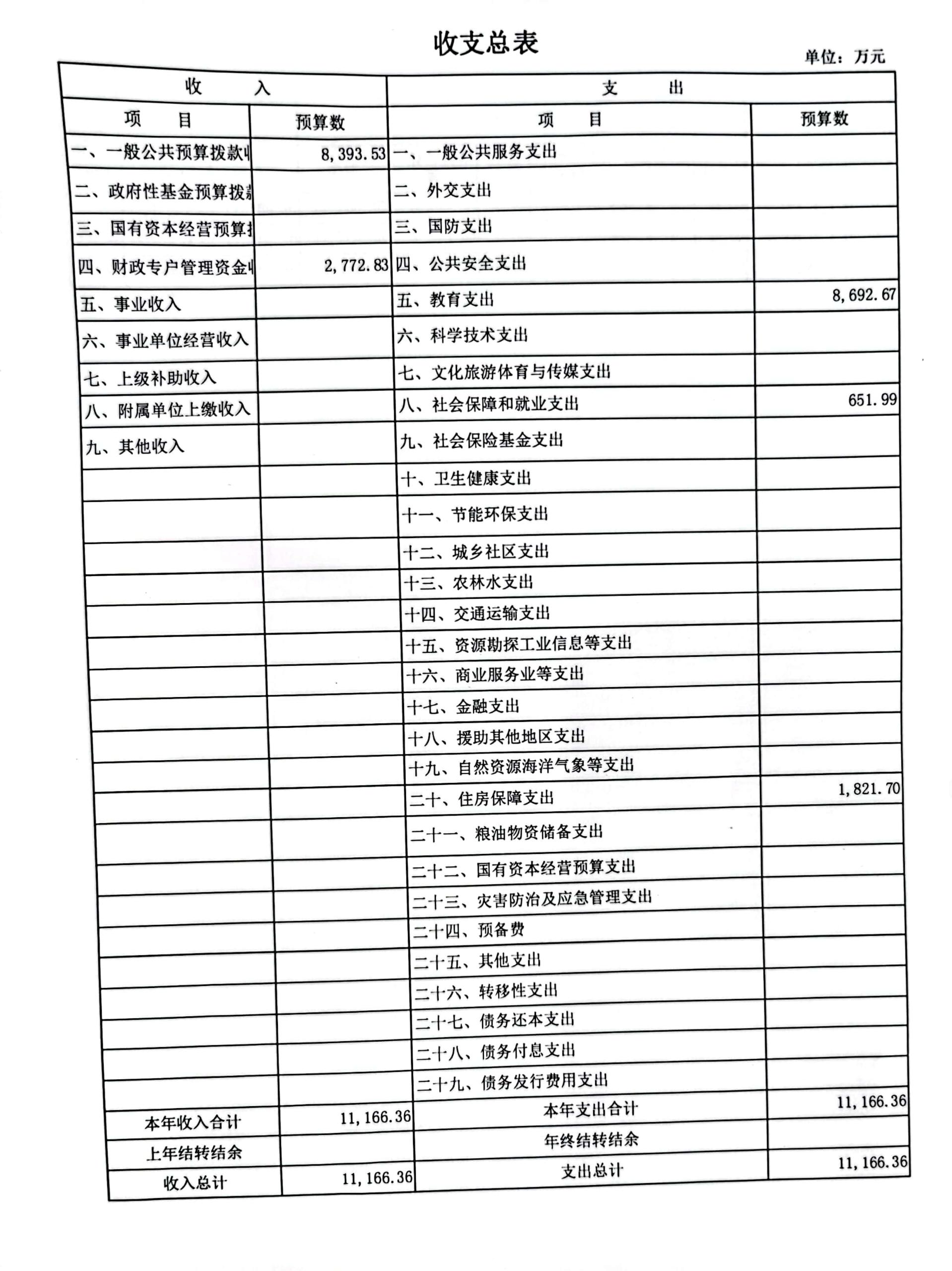 学校2021年度预算总表:收支预算、收入预算、支出预算、财政拨款收支、财政拨款支出预算