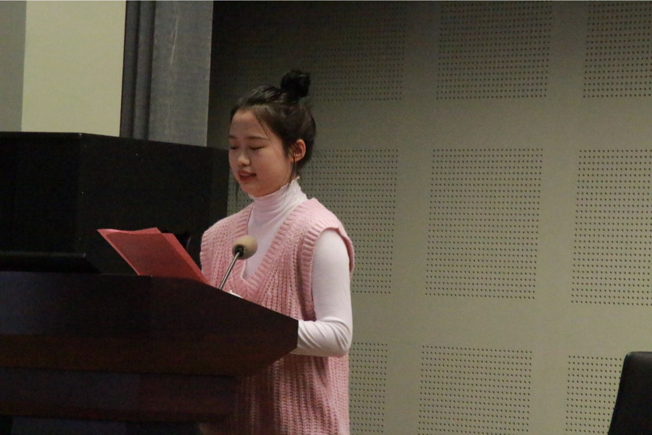 大会的第三个议程由图书资料中心副主任付玲玲老师发言。付老师从“不忘初心、牢记使命”的主题教育切入,引入了本届读书节的主题“阅苏幼·承初心”,引导同学们思考什么是阅读的初心以及阅读对每一个人成长的重要性。阅读自满足人类好奇心而始,随着人的成长,为情感和精神发育而读,为获取认知经验、形成方法论而读,而追本溯源,读书是为了找到本真的自己。付老师勉励大家保持阅读的初心,从每天阅读一个小时做起,从参加一场读书节活动开始,认真地、充实地过好每一天,不负青春、逐梦前行。