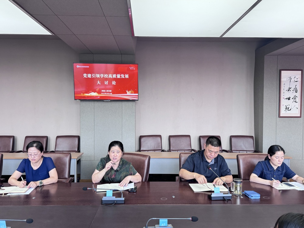 为深入贯彻落实新时代党的建设总要求,以高质量党建引领学校事业高质量发展,2025年9月24日中午,学前教育二系在照怀楼第二会议室组织召开了“党建引领学校高质量发展”专题研讨活动。学校党委委员、副校长吕虹同志应邀出席,系部全体教师参加讨论。会议由系主任张晗教授主持。