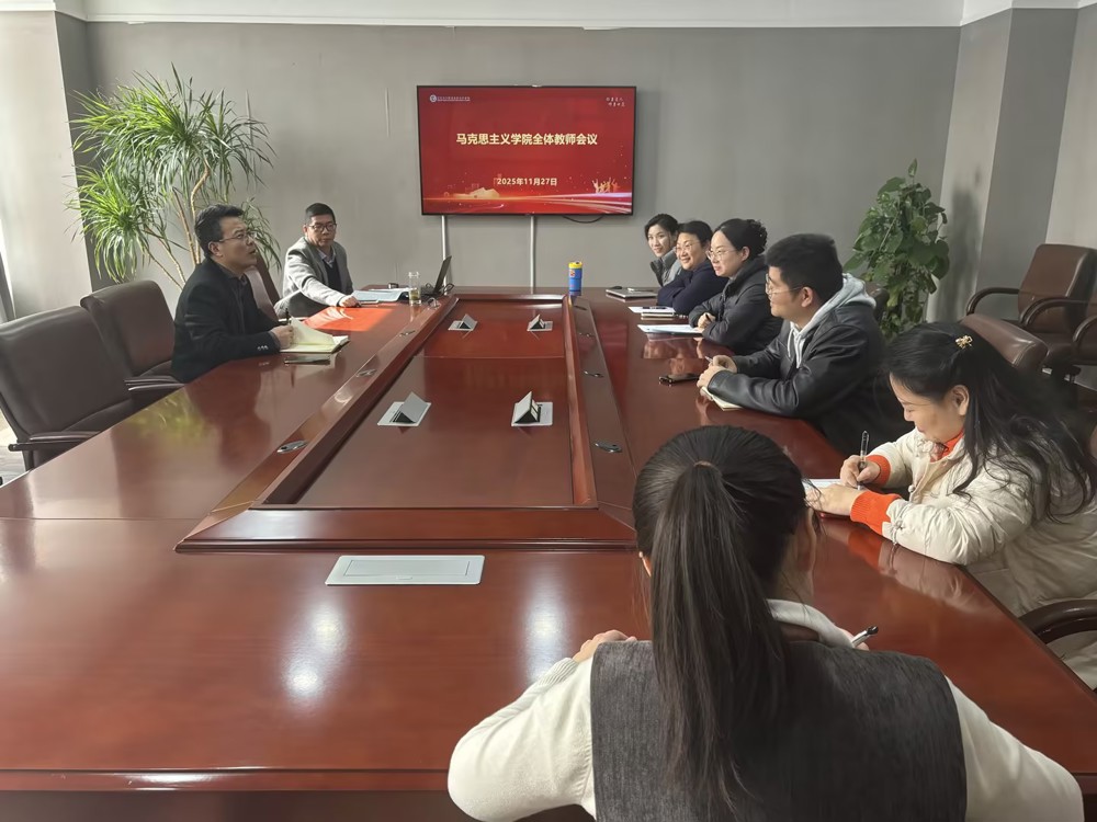 11月27日中午,马克思主义学院在照怀楼第三会议室召开全体教师会议。校党委书记郝云亮出席会议并作指导讲话。会议由马克思主义学院副院长邹学主持,学院全体教师参加。