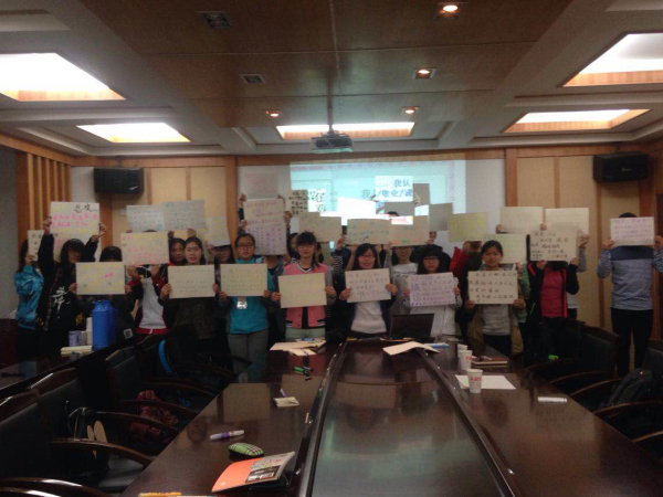 交流明辨会分为四部分,第一部分张晓丽老师梳理了社会主义核心价值观的历史演变,第二部分以“诚信”为引子,开展核心价值知识竞赛,并进行核心价值观宣传方式的思考和讨论,第三部分各年级代表进行社会主义核心价值观内容的阐述,第四部分到会团支书亲笔写下“我为社会主义核心价值代言”的代言心声!