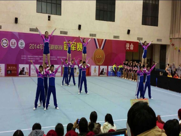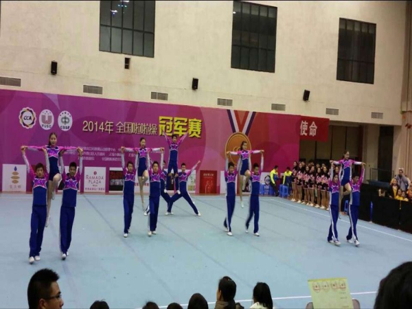 2014年12月12日,全国啦啦操冠军赛在江苏无锡隆重举行。本次冠军赛由国家体育总局体操运动管理中心、教育部学生体育协会主办。比赛设16个组别、20个项目的比赛,是目前我国啦啦操运动规模最大、水平最高的赛事,来自全国20多个省市的216支队伍、4200余名运动员参加了比赛。我校共40名啦啦操队队员在李小和、席菲菲、张如磊老师的带领下,参加了花球、街舞、技巧组三个组别的角逐,现场炫舞激情、活力四射,呐喊声几欲爆棚。