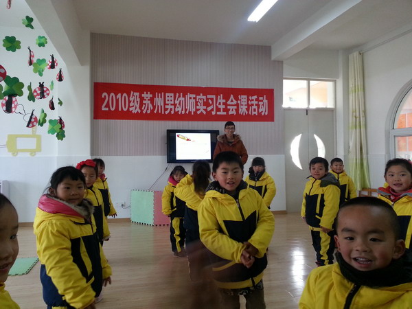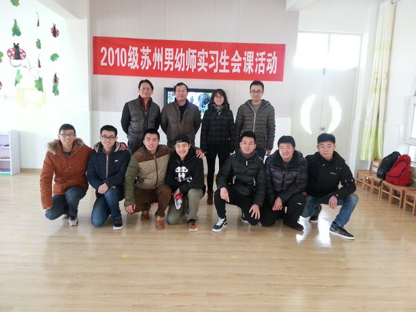 12月12日上午,我校教师袁玉明、王尧、张鹏、陈菲菲四人一行前往——连云港站走访2010级免费男幼师生顶岗实习工作。在连云港市宁海高庄幼儿园,我校教师、幼儿园园长,幼儿园指导教师及实习生共同观摩了实习生组织的大班健康活动《空气棒》,并开展了座谈会,座谈会上,我校七名男幼师生认真谈及实习期间的感受与体验,幼儿园园长以及指导教师对我校男幼师生在实习期间的表现给予了高度评价,并对汇报活动进行点评,进一步帮助实习生积累设计、组织学前教育教学活动的经验。我校教师也认真听取了幼儿园对免费男幼师生培养的意见和建议,这些意见和建议有利于我校进一步思考、完善免费男幼师生的培养。