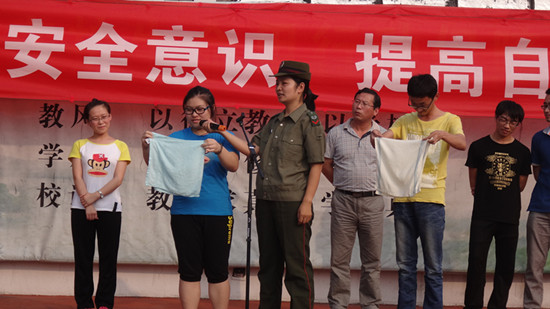 增强消防安全意识,提高自防自救能力 时间:2014-09-05 00:00:00 浏览:次 分享到: 为切实做好学校的消防安全工作,确保师生的生命安全,培养师生在遇到火灾、地震等突发事件时的应变能力,9月4日下午东校区举行了紧急疏散暨消防演习。两个年级分别从教学楼和宿舍,紧急疏散到操场,由区消防大队的警官向全体师生进行了火灾安全逃生的培训,师生进行了灭火演练,最后袁校长向全体师生强调了学校安全制度及要求。消防大队警官的宣讲和指导给全校师生上了一堂生动有效的安全课。 打印正文 关闭本页