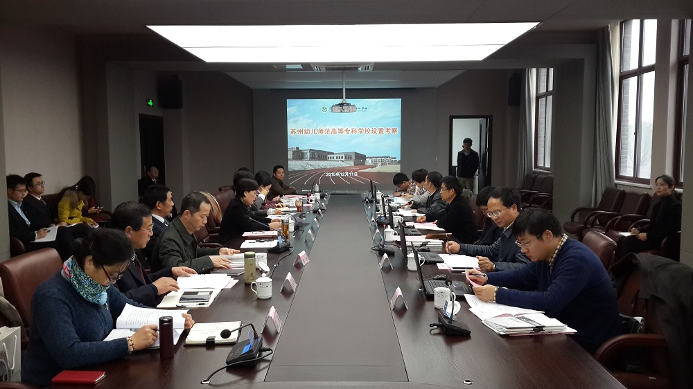 受省教育厅委托,南通大学原副校长周建忠、淮阴师范学院副院长赵宜江、南京信息职业技术学院副院长钟名湖、江苏第二师范学院教务处处长蔡飞、省教育厅发展规划处处长冯大生、省教育厅高教处处长袁靖宇、省教育厅师资处处长崔春霞一行7人于2015年12月10日至2105年12月11日对在苏州高等幼儿师范学校的基础上设置买球赛的app官网进行了实地考察。苏州市政府副市长王鸿声、市政府副秘书长陆俊秀、市政府综合四处处长严强、市教育局局长顾月华、市政府教育督导室副主任顾乃肖、市教育局人事与师资处处长徐卫、发展规划与财务处处长沈昀等领导陪同考察。