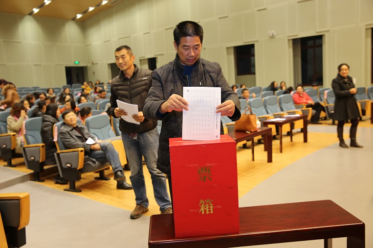 12月30日下午,学校报告厅响起了庄严的国歌声,买球赛的app官网第十届教职工代表大会第一次会议正式开始。与会代表60人,实到56人,另有列席教师代表参加了此次会议。教育局高等教育与职业教育处的两位领导黄丽华、周蔚也莅临指导。在与会代表认真听取了孔宝刚校长和吕虹书记2015年度《述职述廉述学报告》之后,代表们分组进行了评议。评议工作领导小组、主席团把讨论意见集中汇总。在这期间,全体老师民主测评领导班子,并由吕虹书记宣读了《反馈意见报告》,代表一致通过。孔宝刚校长在发表感言时,动情地回忆了自己在幼师的经历,提到最多的是感谢。感谢全体老师对于学校发展的支持,对于校长室工作的肯定,更多的是对于他本人的包容。十年弹指一挥间,在十年幼师工作期间,不为名不为利,只为执着于自己对于师范事业的一个梦。