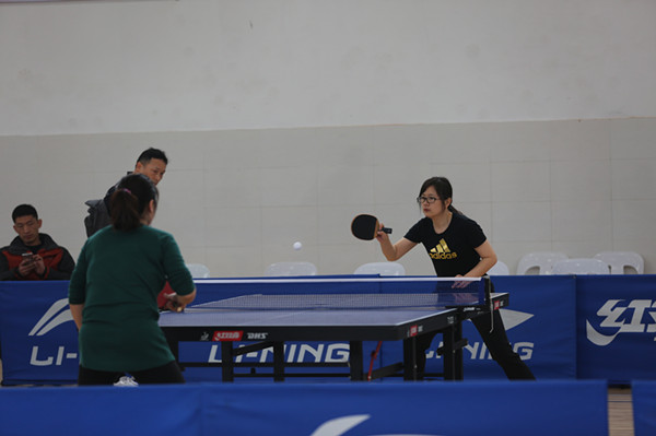 上午八点整,简短的开幕式之后,比赛正式开始。在上午第一阶段的小组循环赛中,我校与四中和平江中学一组,由于对方和我们实力差距较大,我们以小组第一的身份顺利进入第二阶段的淘汰赛。在下午十六进八和八进四的比赛中,我校运动员齐心协力、稳扎稳打,顺利战胜旅游财经与教育工会代表队。比赛自半决赛开始变得紧张激烈起来,半决赛中的对手是苏高职代表队,他们的实力不容小觑。比赛中我们精诚团结,认真对待每一个球,最终我们3:1赢得苏高职进入决赛。最紧张、最激动人心的是在决赛,对方是我们在决赛中的老对手、去年团体冠军——技师学院代表队。决赛第一场比赛刘春一老师以2:1强势拿下,但接下来的三场比赛遗憾输给对方,最终我校教职工代表队1:3不敌技师学院,获得了本届乒乓球比赛团体亚军。