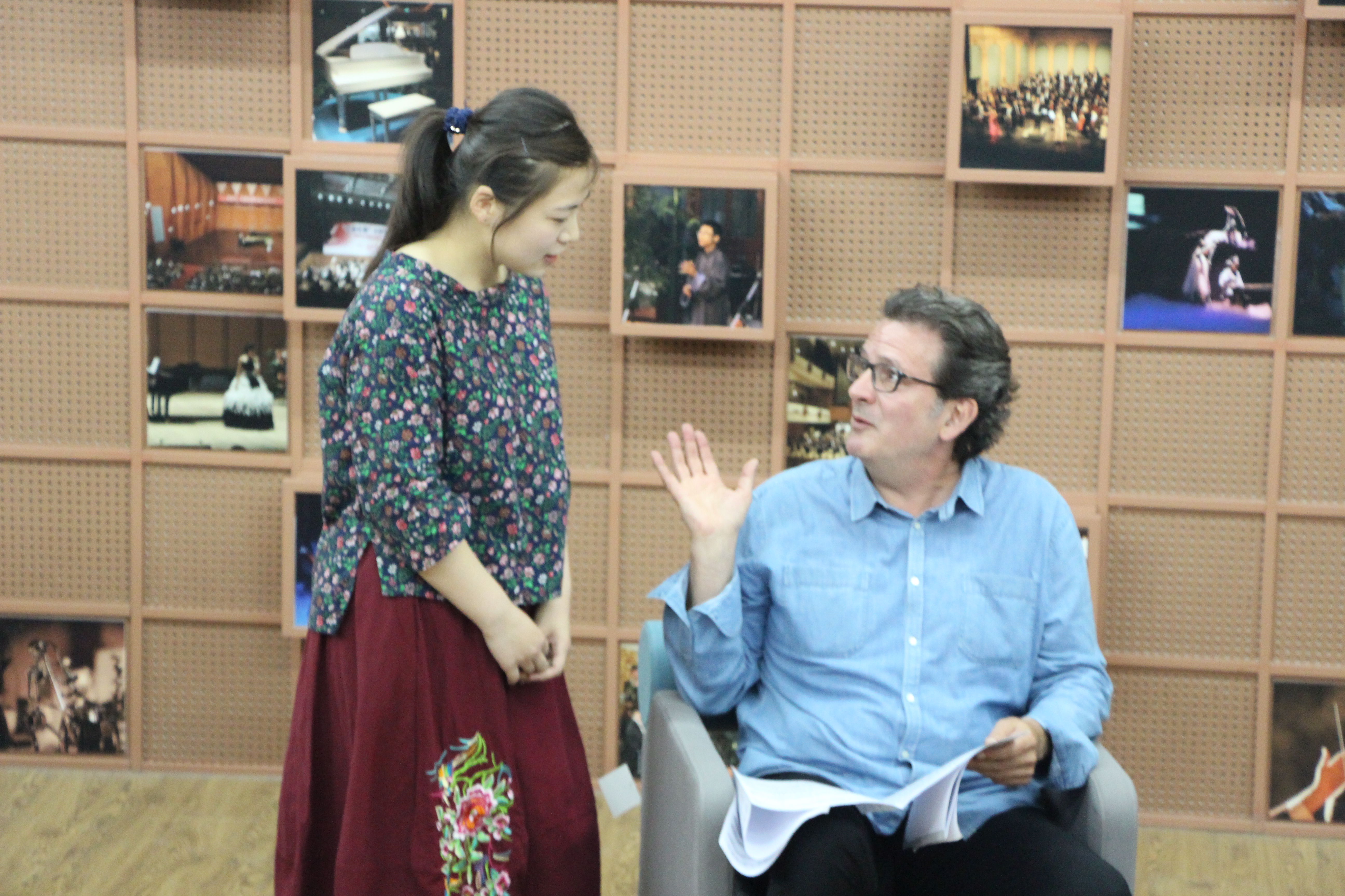 5月10号下午,在初夏的微风吹拂下,法国著名爵士钢琴家菲利普·莱奥吉来到我校与17级音教音表学生举行校园艺术沙龙活动。菲利普·莱奥吉六岁起学习钢琴,在他四十五年的演奏生涯中,担任乐队的领袖、音乐总监及首席钢琴,创立艺术节,在挪威、瑞典、德国、美国、中国、韩国和法国举行了一系列钢琴独奏会,他还经常现场演出进行编曲,灌制了多张唱片。2014年,《我的法文标准歌谣集》在由法国知名杂志组织的“第二十五届最好的爵士CD”评选活动中获得殊荣。此次沙龙活动,莱奥吉先生除了在现场为我们艺术系学生在钢琴弹奏中进行专业指导,还阐述了爵士钢琴的魅力所在,即激进、前卫、突破、创造。爵士钢琴曲因为节奏上的变化打破了一个相对规整的律动,使得它随性为主,节拍可以随意变换,从而带来了“摇摆”和“变幻”的感觉。之后,他给我们学生演绎了他精选的两首法国民歌《玫瑰人生》《乘上A列车》,以及两首中国民歌《浏阳河》和《采茶扑蝶》,他娴熟的弹奏技巧、投入的感情理解以及耳熟能详的曲目使学生和老师完全被打动,收获了阵阵掌声和欢呼。
