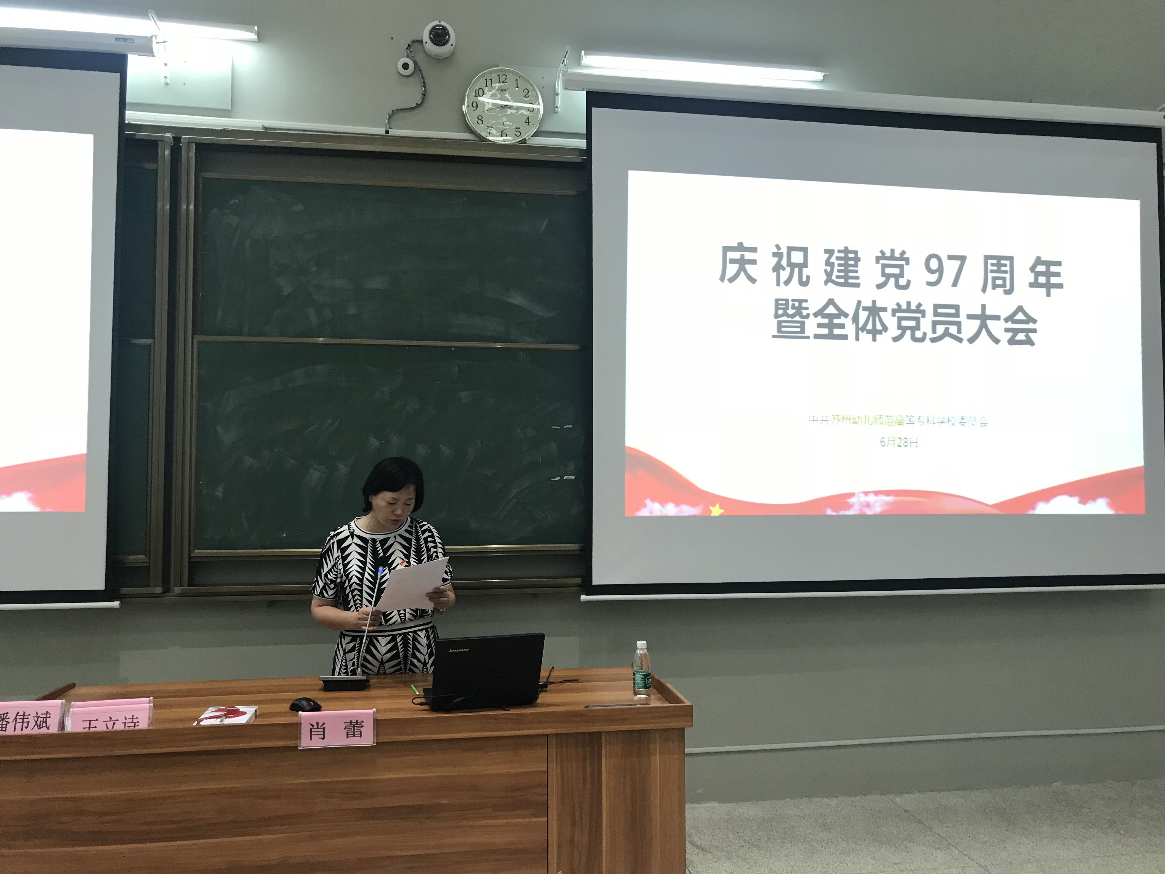 6月28日下午13:30,在校合班教室D,学校举行了庆祝建党97周年暨全体党员大会,此次大会由组织人事处副处长潘伟斌主持。