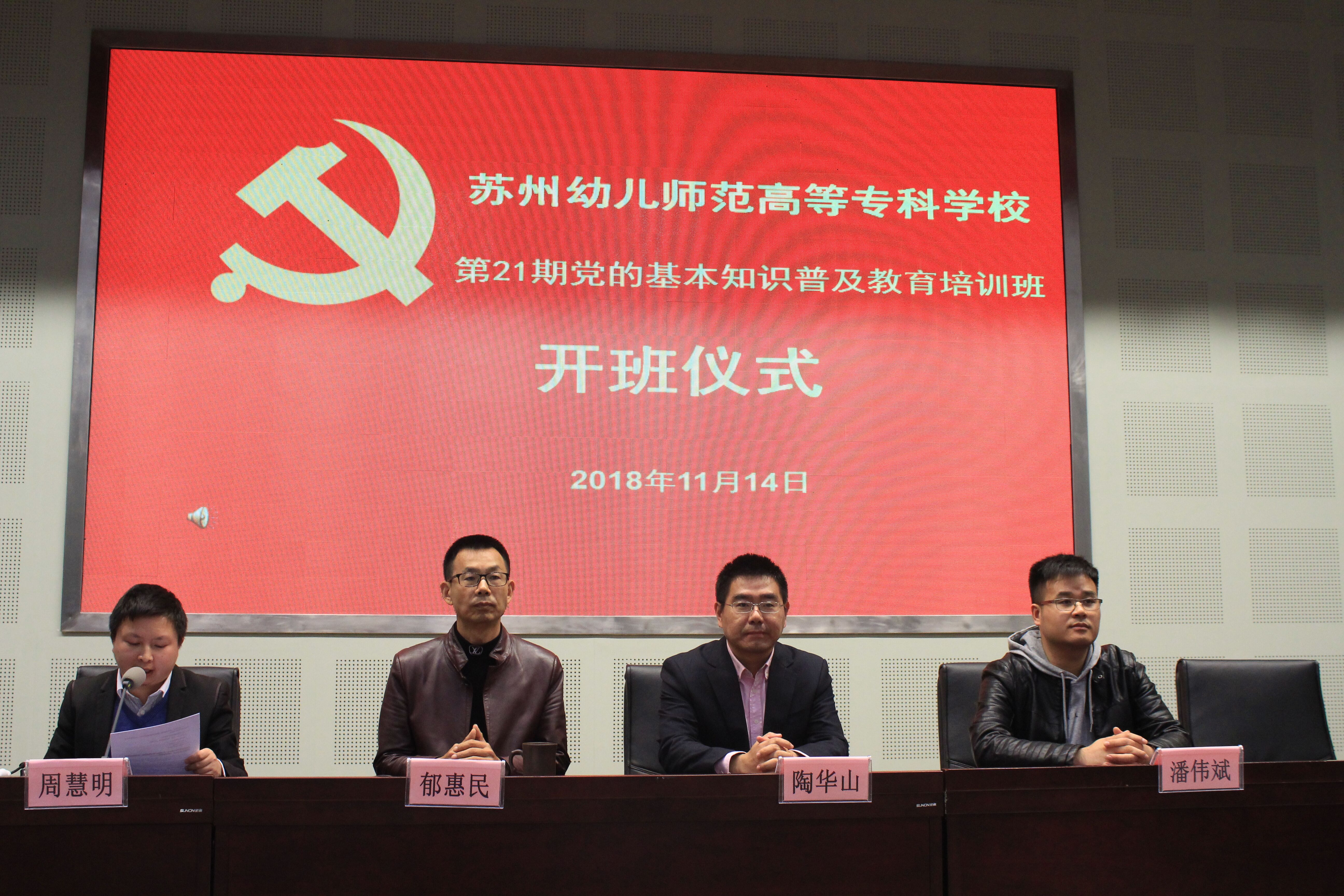 11月14日晚6点,我校第21期党训班在报告厅开班,副校长陶华山、纪检监察室主任郁惠民、组织人事处副处长潘伟斌、团委副书记周慧明等领导老师出席了开班仪式,郁惠民老师为全体学员讲授了本期党训班的第一课《中国共产党的光辉历程》。