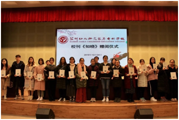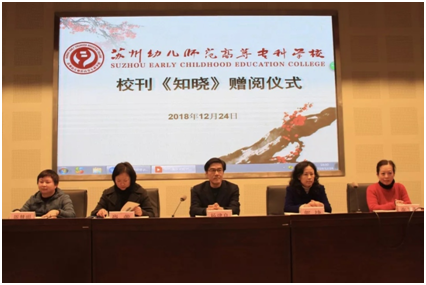 杨建良校长发表讲话。杨校长肯定《知晓》是我校校园文化建设的一颗新成果,希望《知晓》作为新载体和新窗口,能更好地展示苏州幼专的校园文化和师生风采,同时还与同学们亲切交流,讲述了学校为同学们的在校学习生活、身心发展所开展和计划进行的相关工作,赢得了同学们的阵阵掌声。最后,杨校长也向同学们提出了要求:一要牢记幼师生身份,养成健康向上的精神风貌;二要理论联系实际,积极参与丰富的社会实践活动,不断提高自我、成人成才。
