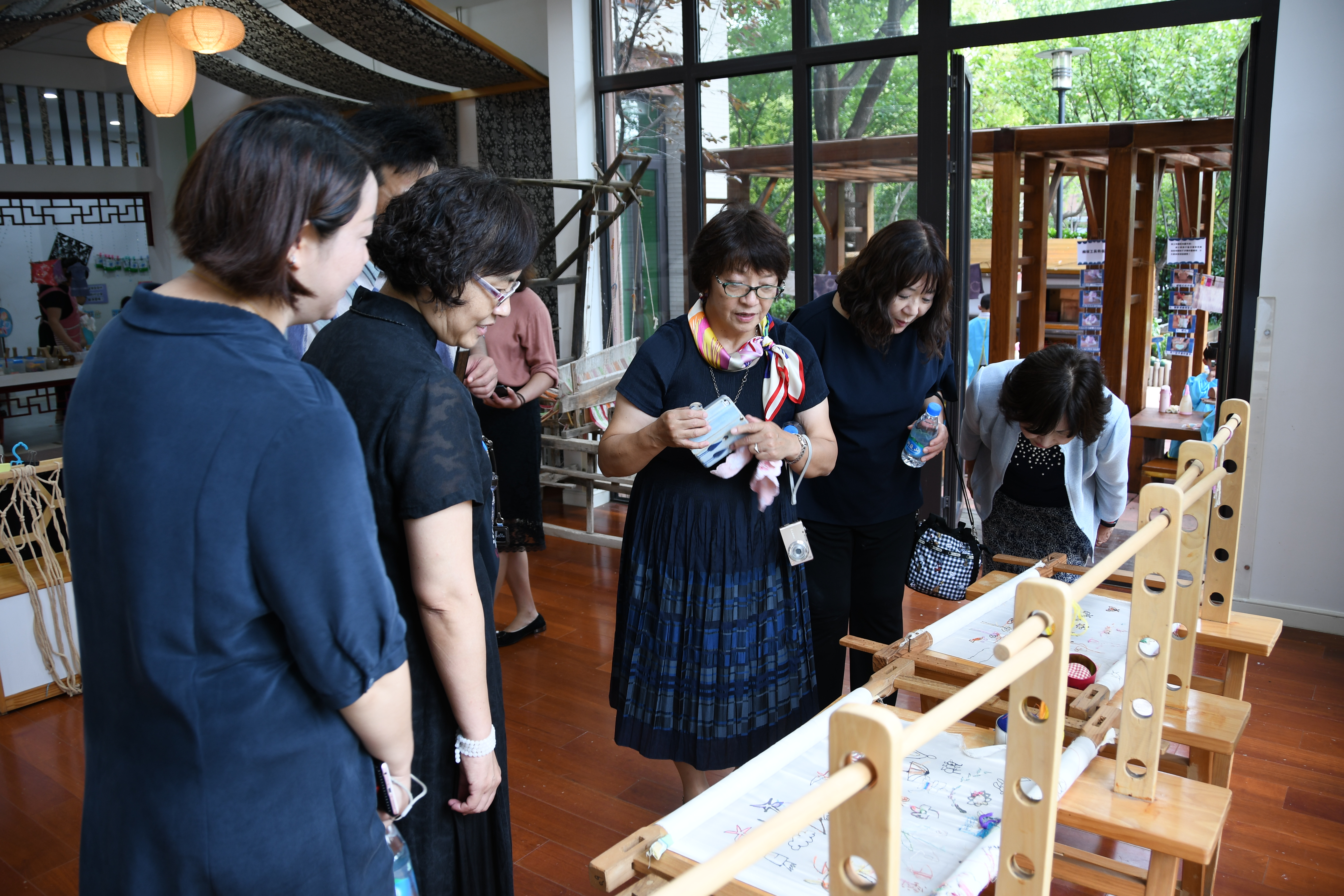 日方代表三人一行参观了花朵幼儿园的木工区,美术创意区,泥工区,果树林,建构区,体能区以及教育幼儿园的视听室,精工坊,科学发现室以及木工坊,儿童体检中心,儿童保健馆等,在这些创意满满而又知识丰富的教室里,三位幼儿园代表和小朋友亲切互动,还收到了小朋友亲手制作的DIY贺卡以及布艺饰品。教育幼儿园小朋友们为大家准备的节目《苏州风光真真好》构思新颖,表演精彩,获得了大家的喜爱。