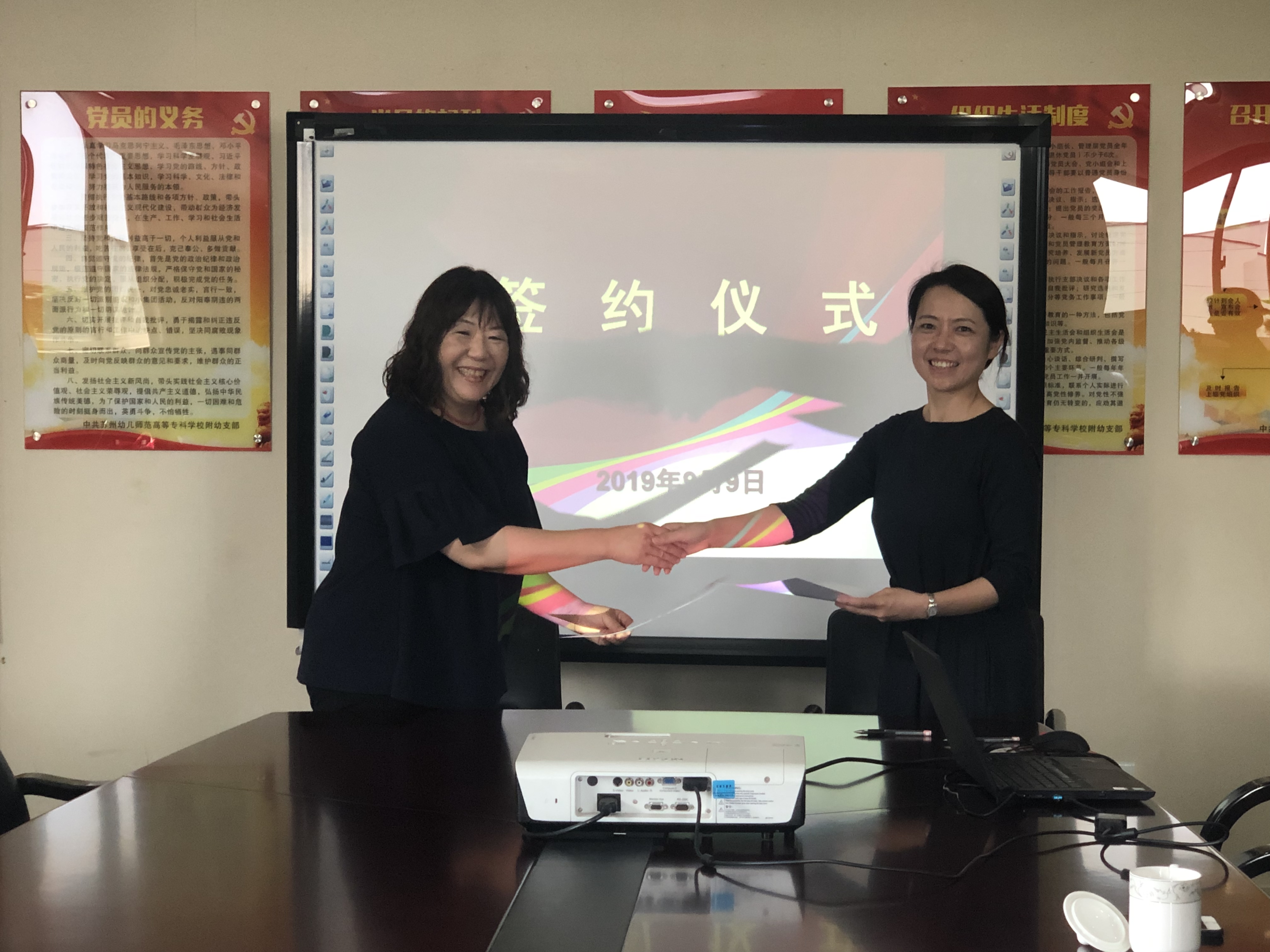 日方代表对我们在幼儿园课程上的专业精神和倾注的心血啧啧称赞,同时也被孩子们的热情深深感动。参观结束,双方签订了友好协议,希望以此为新的起点,在以后的日子里常来常往。日方代表更是表达了“将老师和学生都带过来访问交流”的希冀。