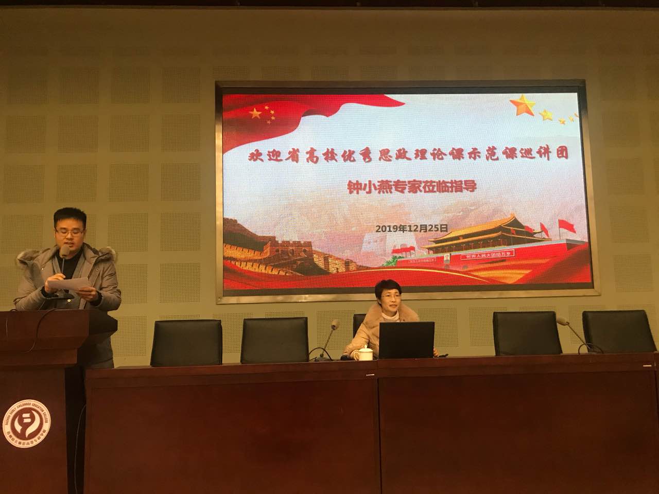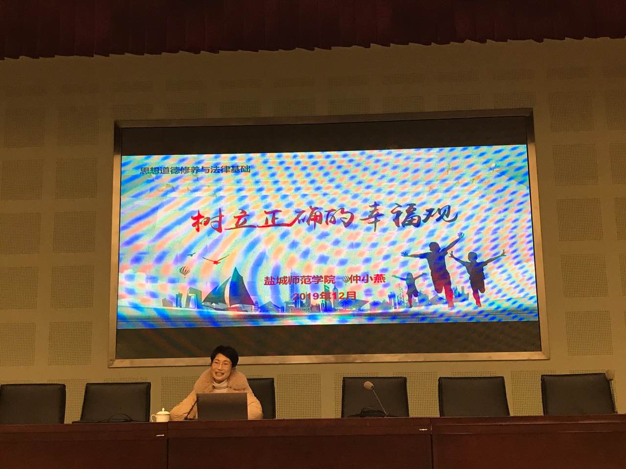 为深入学习贯彻习近平总书记在学校思想政治理论课教师座谈会上的重要讲话精神,12月25日下午,江苏省高校优秀思想政治理论课示范课巡讲活动走进我校。省高校优秀思政课示范课巡讲团成员,盐城师范学院马克思主义学院思品系主任仲小燕教授来我校作了一场精彩的思政课示范教学。我校全体18级学生和部分思政教师一起聆听了示范课。组织人事处潘伟斌副处长主持了本次示范课巡讲活动。
