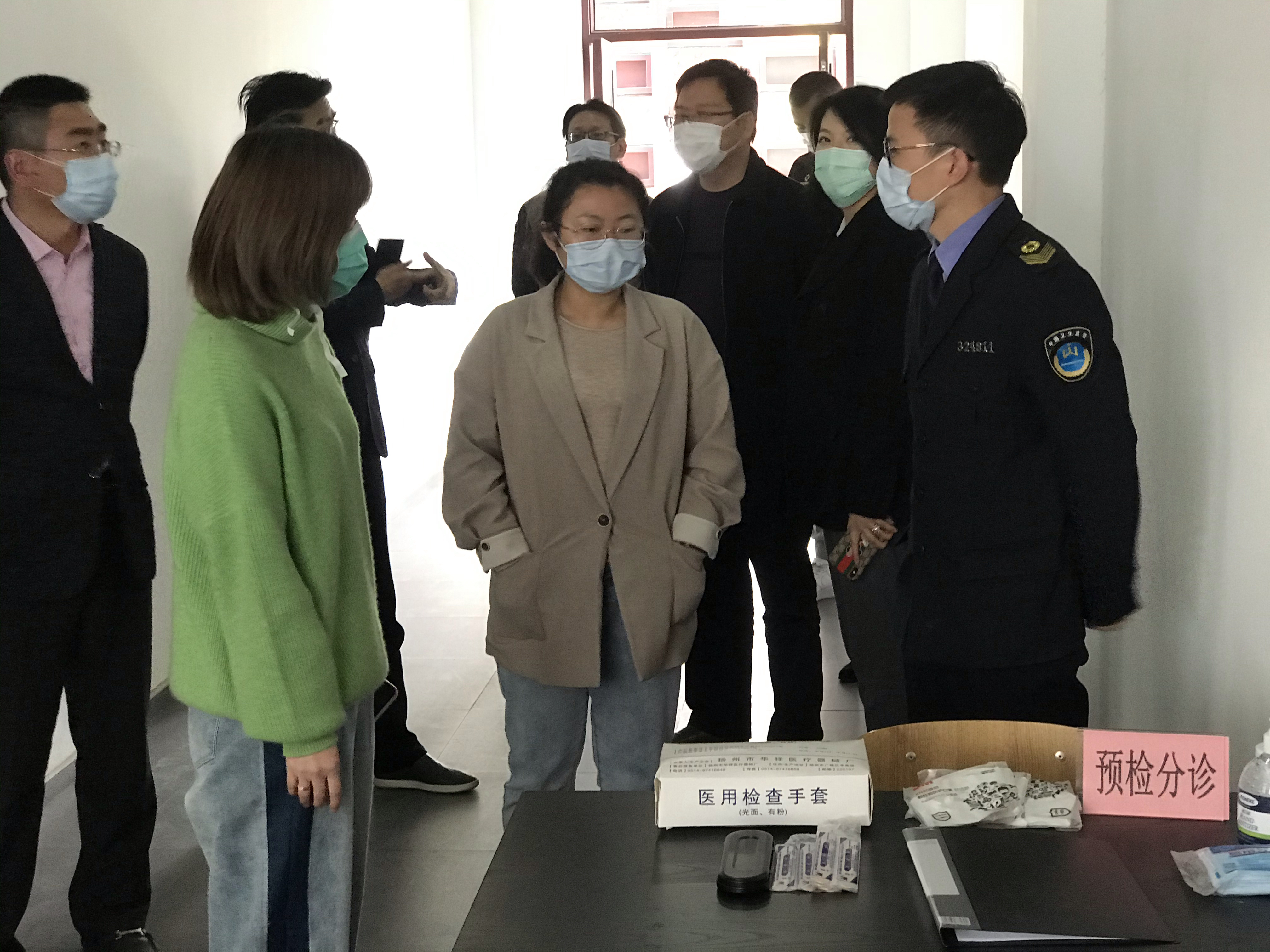 张国镇副局长一行按照开学报到当天的流程,实地查看了学校的临时隔离点、物资储备室、食堂、宿舍、超市等场所,并就超市限流、转运车辆落实等内容提出了细致的整改要求。