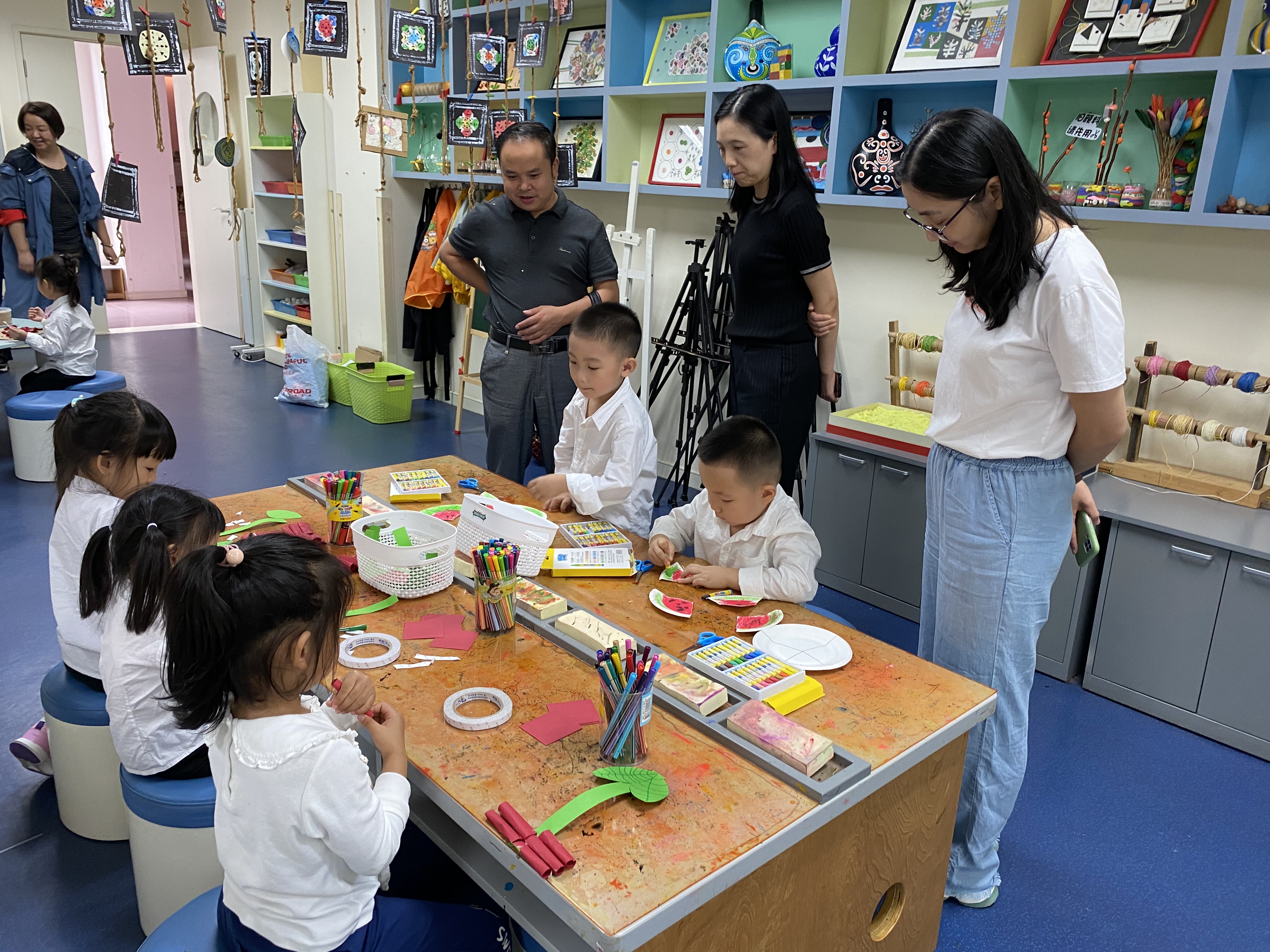 在教育幼儿园,付蓉园长一行在杨洁园长、王赟副园长、俞芳博士的带领下,参观了幼儿园的户外游戏区、专用活动室等。杨洁园长就幼儿园的建园历史、师资队伍、课程建设等向付蓉园长一行进行了介绍,幼儿园室内外环境及园本课程给付蓉园长一行留下了深刻的印象。