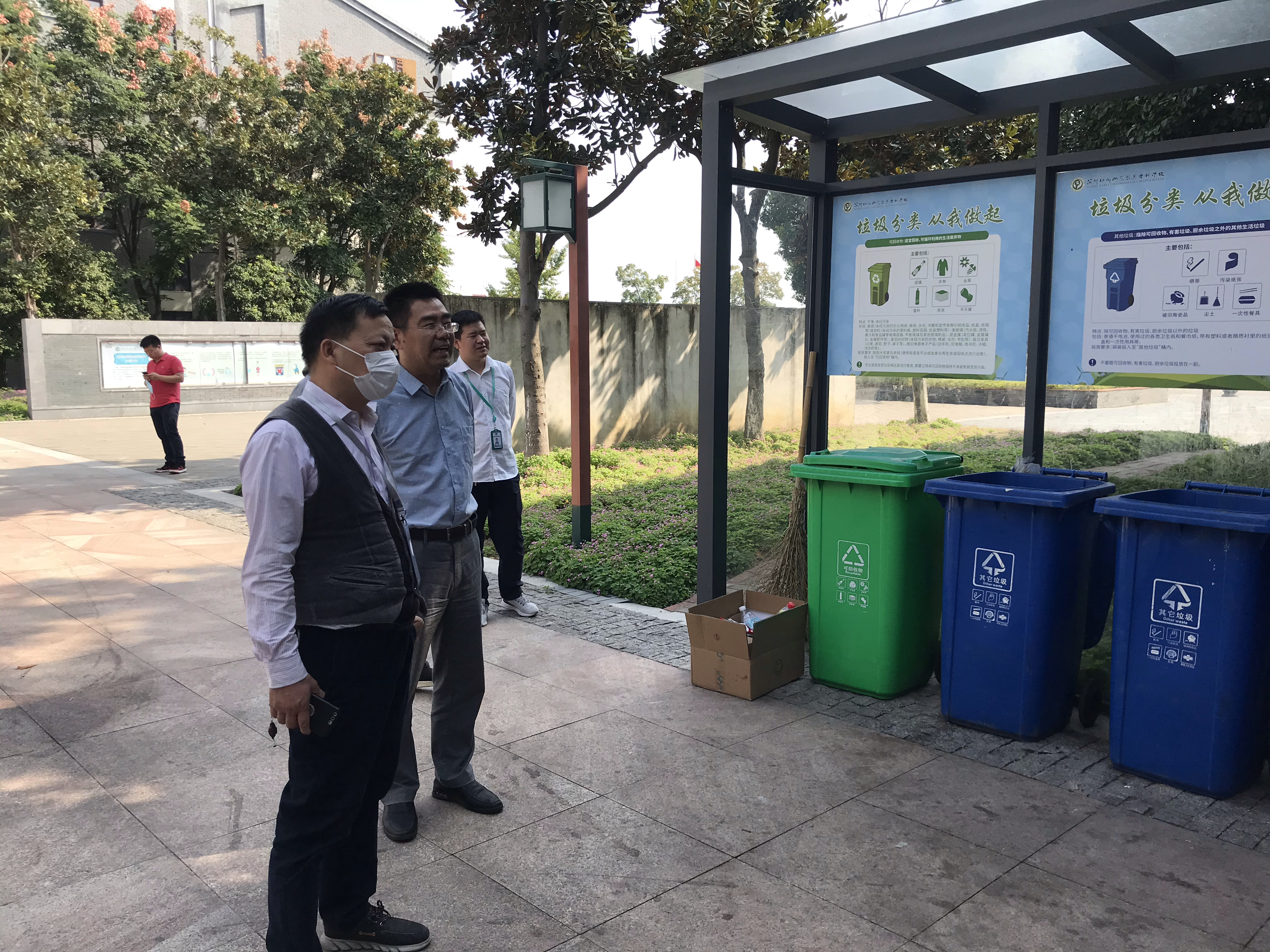 王建洪副调研员等检查组成员在陶华山副校长的陪同下,实地查看了我校的垃圾分类工作宣传氛围营造、宿舍区、教室、食堂等区域的垃圾分类设施设备安放情况,检查了同学的垃圾分类投放准确率。王建洪副调研员高度评价了我校的垃圾分类工作,认为我校垃圾分类工作细致扎实,氛围营造到位,师生员工参与度高、配合度高。与此同时,在检查中,检查组也对我校食堂的垃圾分类的工作提出了进一步整改的意见。