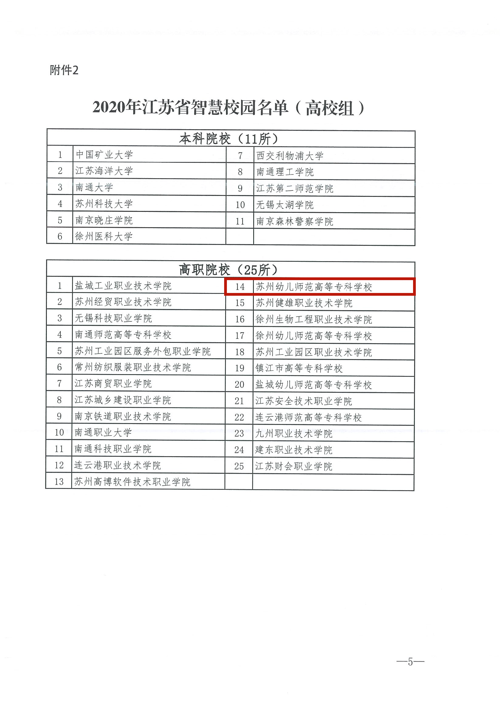 近日,江苏省教育厅、江苏省工业和信息化厅联合印发《关于公布2020年江苏省智慧校园及示范校审核认定结果的通知》(苏教信函〔2021〕1号),我校被认定为2020年江苏省智慧校园!