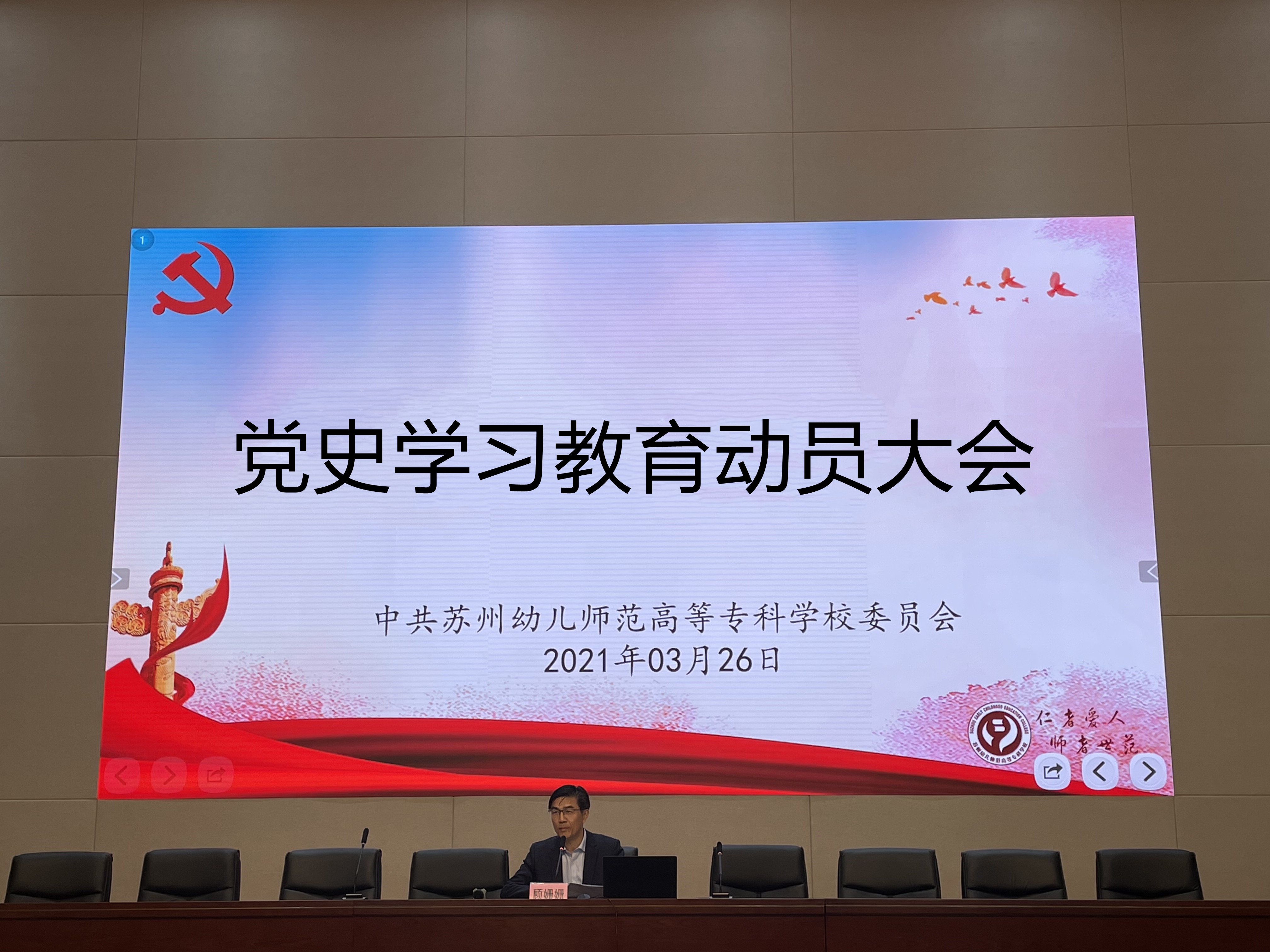 杨建良校长最后强调,全校师生要紧密团结在以习近平同志为核心的党中央周围,在习近平新时代中国特色社会主义思想科学指引下,扎实开展党史学习教育,切实把学习教育的成果转化为攻坚克难、争创一流幼专的强大动力和实际成效,奋力谱写苏州幼专改革发展新篇章,以更加优异的成绩迎接建党100周年。
