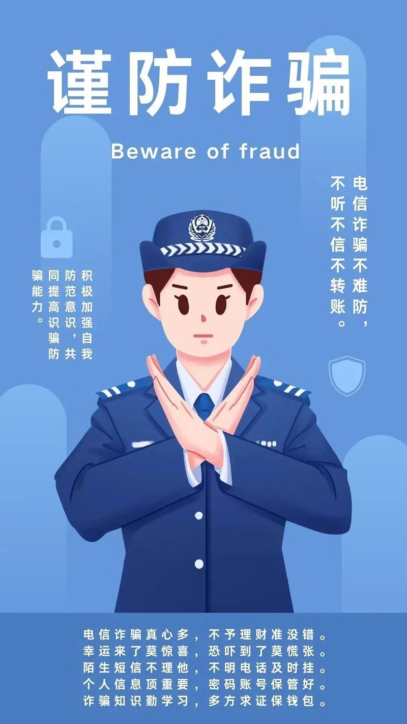 2.要保管好个人账户信息。在相关网站输入账号、手机号码、查询支付密码等重要信息前要谨慎核实域名真实性,坚决不点击可疑链接,不连接来历不明的无线网络,不扫描非正规渠道获取的二维码,守好自己的安全防线