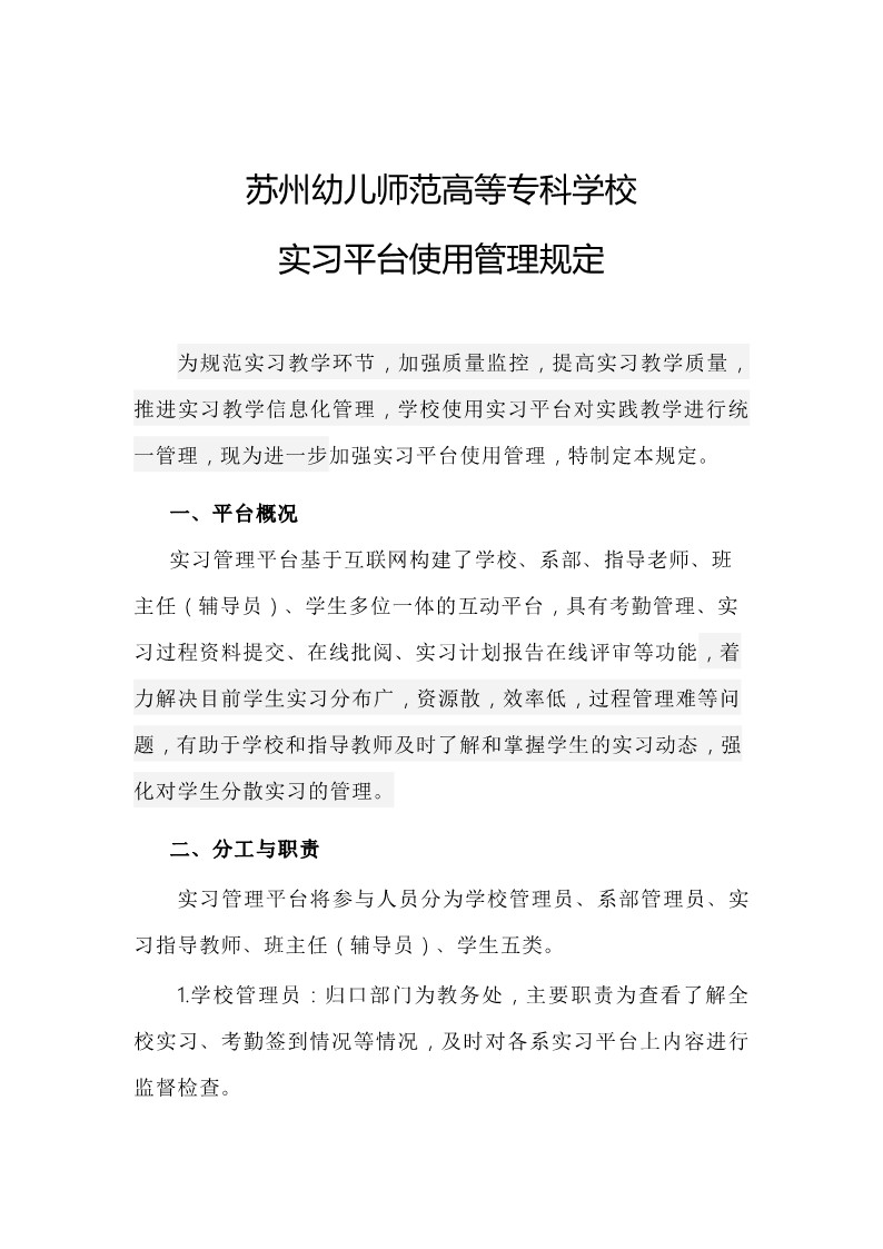 实习平台管理规定