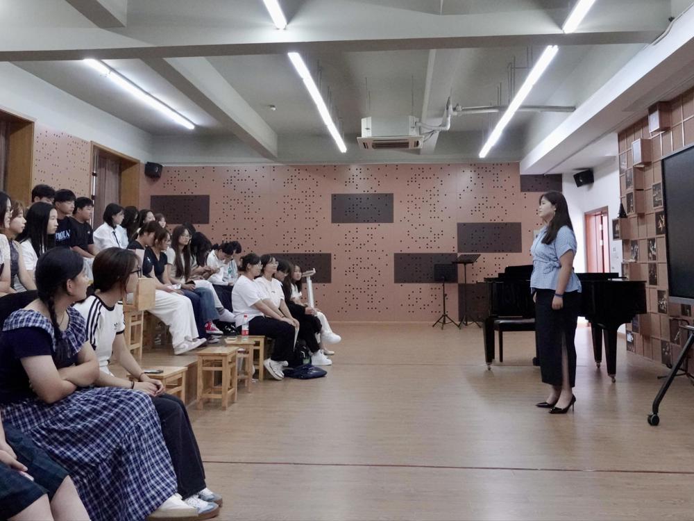 9月25日和26日,音乐教育专业25级新生在艺术楼音乐教室顺利完成了入学观摩汇报活动。任课教师席雯婷、王思思、吴吟晗、吴琼苑、李凌之、陈雁桢到场全程观摩指导。本次活动以班级为单位,按照学号有序进行声乐与器乐的专业展示。汇报现场,同学们虽略有青涩,但动人的乐声饱含着他们对音乐的憧憬,悠扬的琴声展现了他们对艺术的热爱。