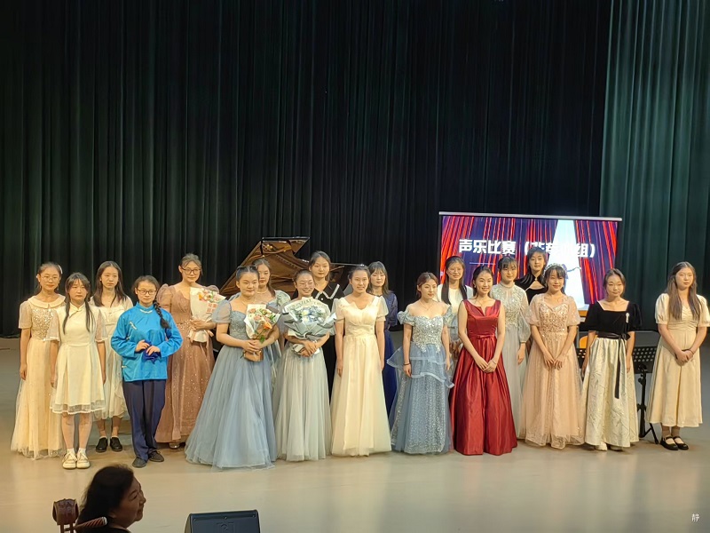 赛后,评委老师进行了精辟的点评,她指出选手们的演唱状态非常自然,个别同学嗓音条件极佳,同时指出,未来还需要在歌曲的处理、基本功等方面加强训练。悠扬的歌声响起,最后参赛的同学们纷纷上台拍照留念。本场比赛顺利结束!