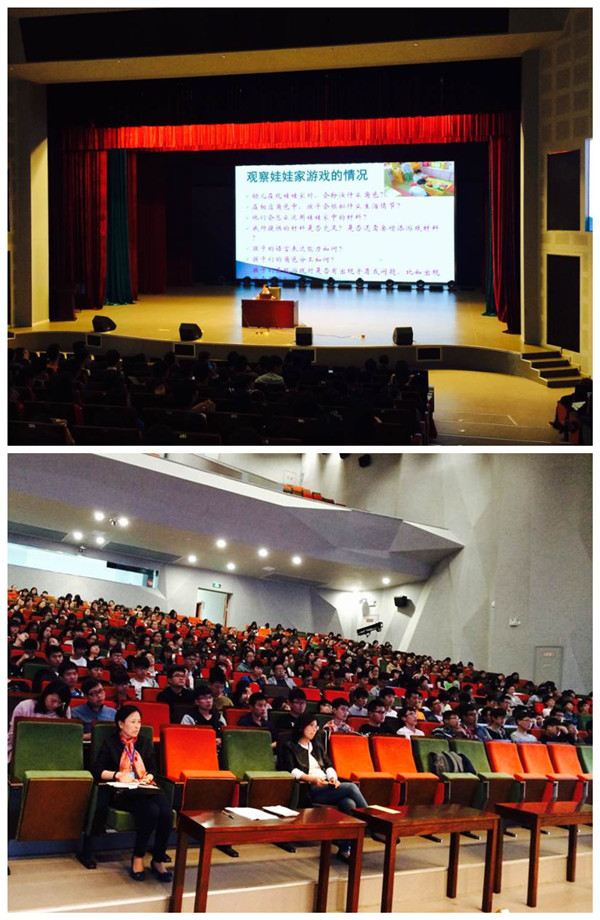讲座的第二部分是讲解观察的方法。张老师用生动的案例,结合自己的从教经验,详细地解决了两个问题:如何实施观察?如何提高观察的有效性?同学们理解了观察中三个阶段的不同要求,以及观察不同活动的不同方法,受益匪浅。