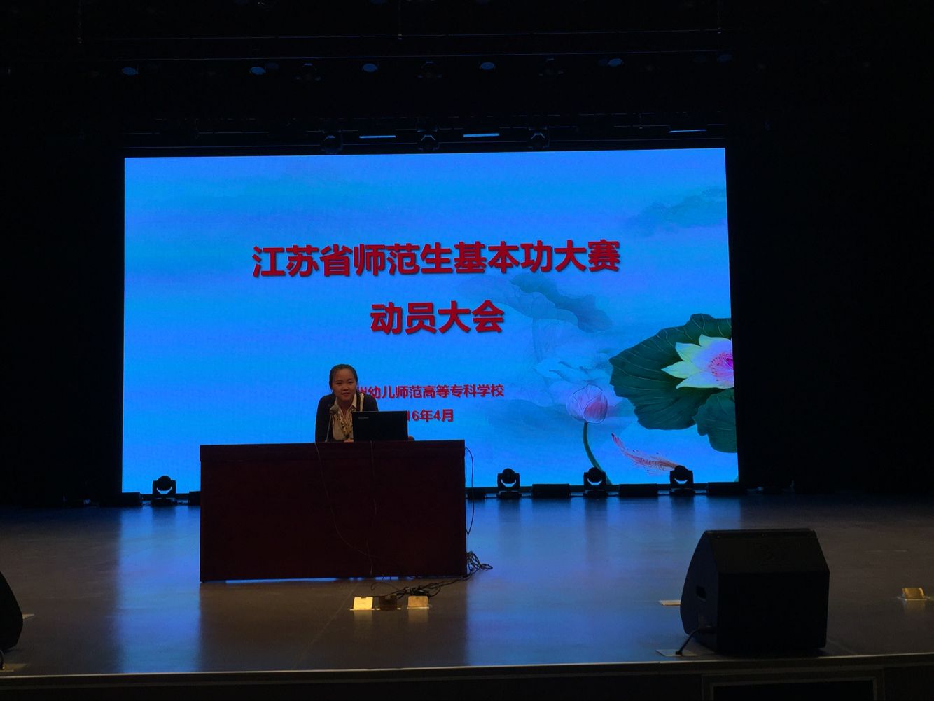 4月25日下午班会课期间,我校12级学生在演出厅开展了江苏省师范生教学基本功大赛动员大会。有幸请来第四届基本功大赛一等奖选手——11(10)班王思羽同学为我们带来她宝贵的经验。首先,她告诉我们要把握机会,基本功大赛的选拔不仅仅是对我们技能上的锻炼,也能增强我们的心理素质;其次,她分享了一下自己在平时培训和比赛时的事情,告诉我们要勇敢与自信,便能在众多的选手中脱颖而出;最后,要针对自己的实际情况,改善短板,发扬长处,在选拔与比赛中发挥出自己的实力。