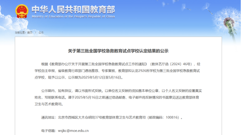 喜报:我校入选全国学校急救教育试点学校 来源: 发布时间:2025-05-27 13:17:02 浏览次数: 次 【字体:小 大】 近日,教育部发布《关于第三批全国学校急救教育试点学校认定结果的公示》,经过学校自主申报、省级教育行政部门遴选推荐、专家复核,我校成功入选第三批全国学校急救教育试点学校。第三批全国学校急救教育试点学校名单 分享到: 【打印正文】