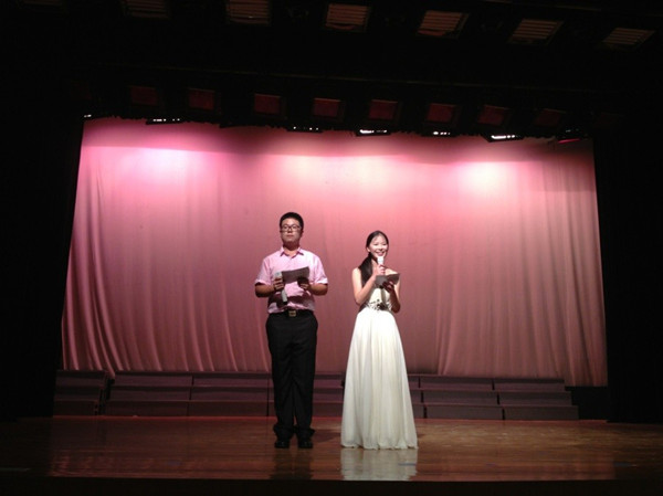 2013年5月29日晚,在我校本部演出厅内,来自我校特长班的同学们为师生们带来了一场完美的视听盛宴。在此次专场演出中,我们欣赏到了曲调明亮、旋律优美的大合唱《山丹丹花开红艳艳》,也领略了充满阳刚与活力的健美操《舞所不能》,还感受到了如抒情小夜曲般的朗诵《预言》等,濮校长、肖主任等老师观看了此次专场演出。