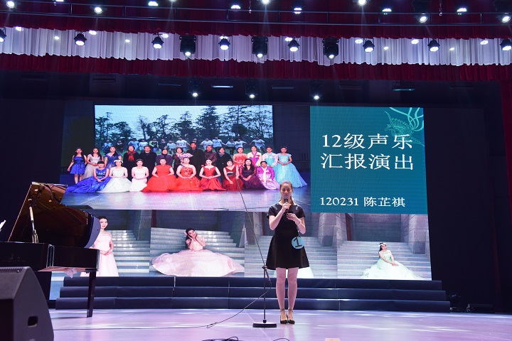 首先上场的是122班的陈芷祺。她在有限的时间内既吹奏了巴松管,又表演了弹唱《西班牙女郎》。她从小学习钢琴,声乐,曾赴奥地利进行巴松管的学习。她扎实的基本功令人赞叹,她对音乐的那份执着更是令人敬佩。
