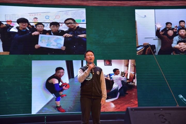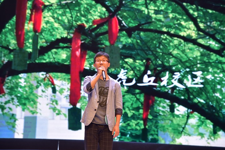 129班的毛润健与金秋成的风格截然不同。他这次走的是抒情路线,一开始他就追忆这四年来的成长与感动。在舒缓的音乐声中,他把这些美好的回忆娓娓道来,使在座的每位同学仿佛重温了那一幕幕动人的画面。之后,一曲深情的演唱《最长的电影》更是打动了在座的所有人。