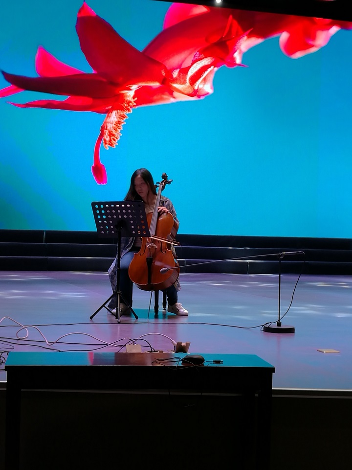 121班的陈琏亦压轴上场。她演讲的主题是《与艺术的对话》。她讲述了自己与书法和大提琴之间的不解之缘。13年的坚持,让她成立了一间属于自己的书法工作室;4年的不懈努力,让她的琴技突飞猛进。最后一曲柴可夫斯基的《悲歌》让人听得如痴如醉,使观众感受到大提琴独特的魅力。