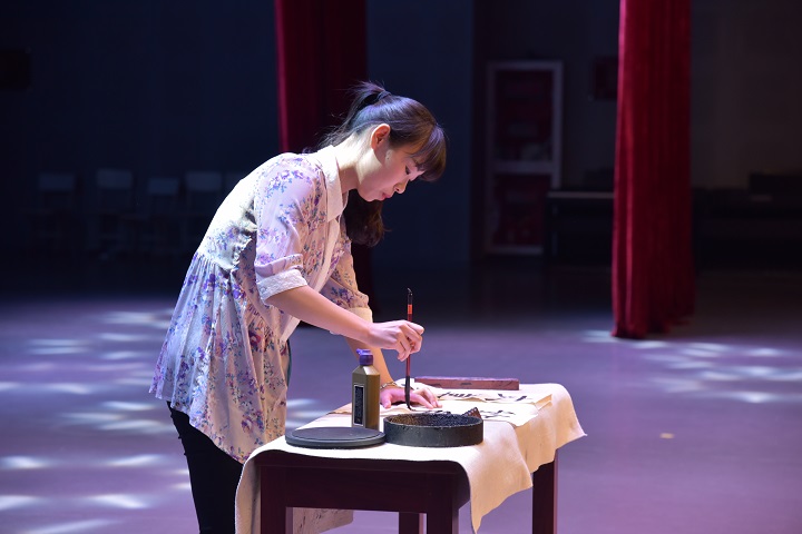 文静典雅的127班马奕慧同学带来了她的演讲——《翰墨飘香》,发表了自己对隶书的独到见解。演讲之后,她进行了现场书法展示,展现了书法的静与美,让观众们领略了中华文化的博大精深。