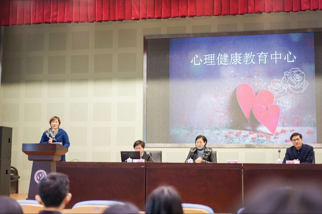 随后,何冬怡老师作为心理健康教育中心的负责人,向大家介绍了中心的基本情况和功能,如何预约个体咨询和团体辅导,展示了中心曾经开展过的丰富多彩的心理活动,并介绍了大学生心理健康协会的组织状况,希望同学们经常来中心交流。彭宗懿、吴念聪、朱君谊等三位同学分别上台向大家介绍了各自所在中心的概况及目前已开展的工作,让出席活动的师生们对各中心有了更深入直观的了解。