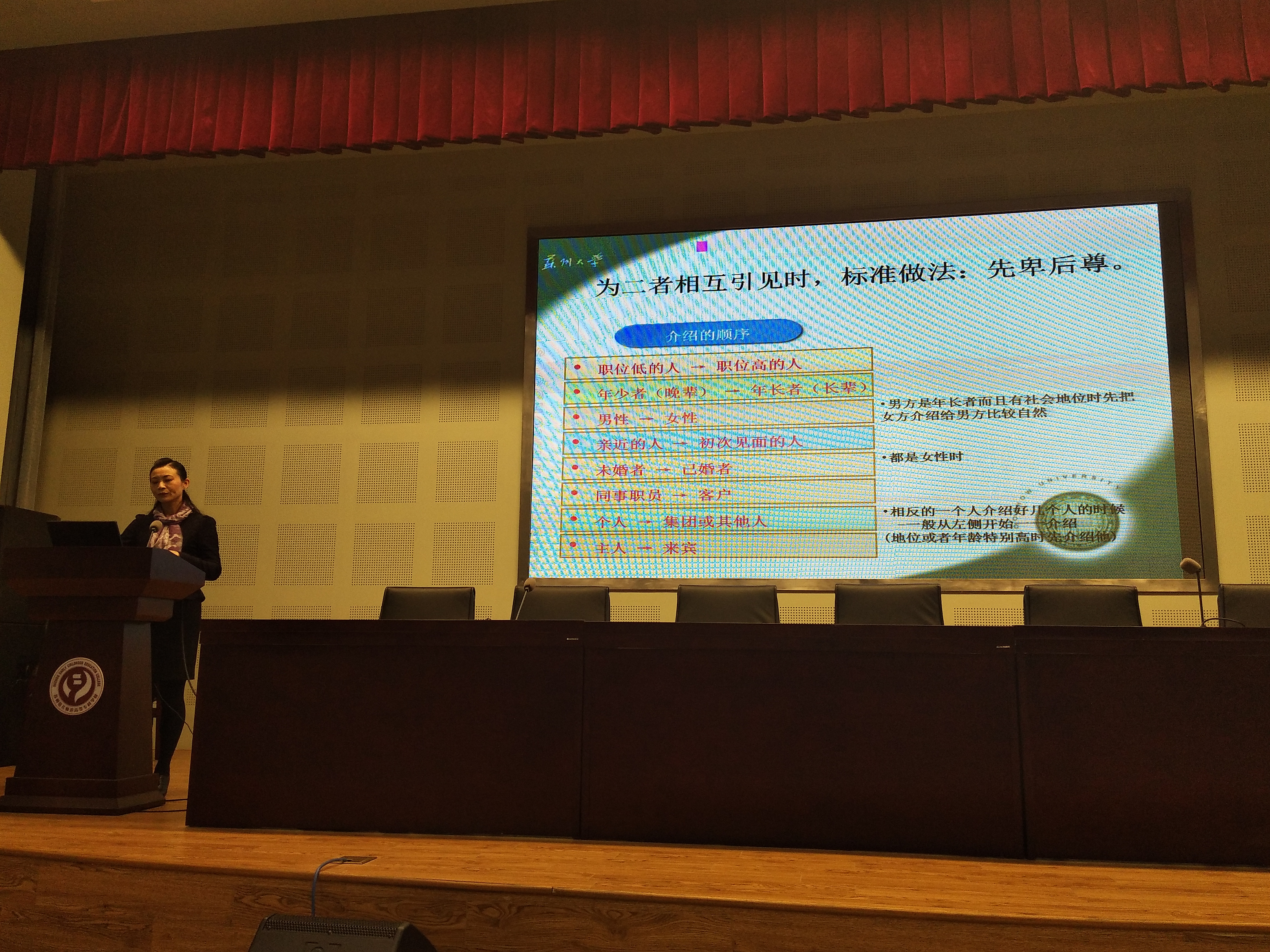 汪博士主要从事人力资源管理、沟通管理、礼仪方面的研究,在女性形象与礼仪的培养上有着自己独到的见解。我校举办这次讲座主要是为了提高同学们对个人形象的管理意识,增强同学们在日常人际交往中对礼仪的重视。