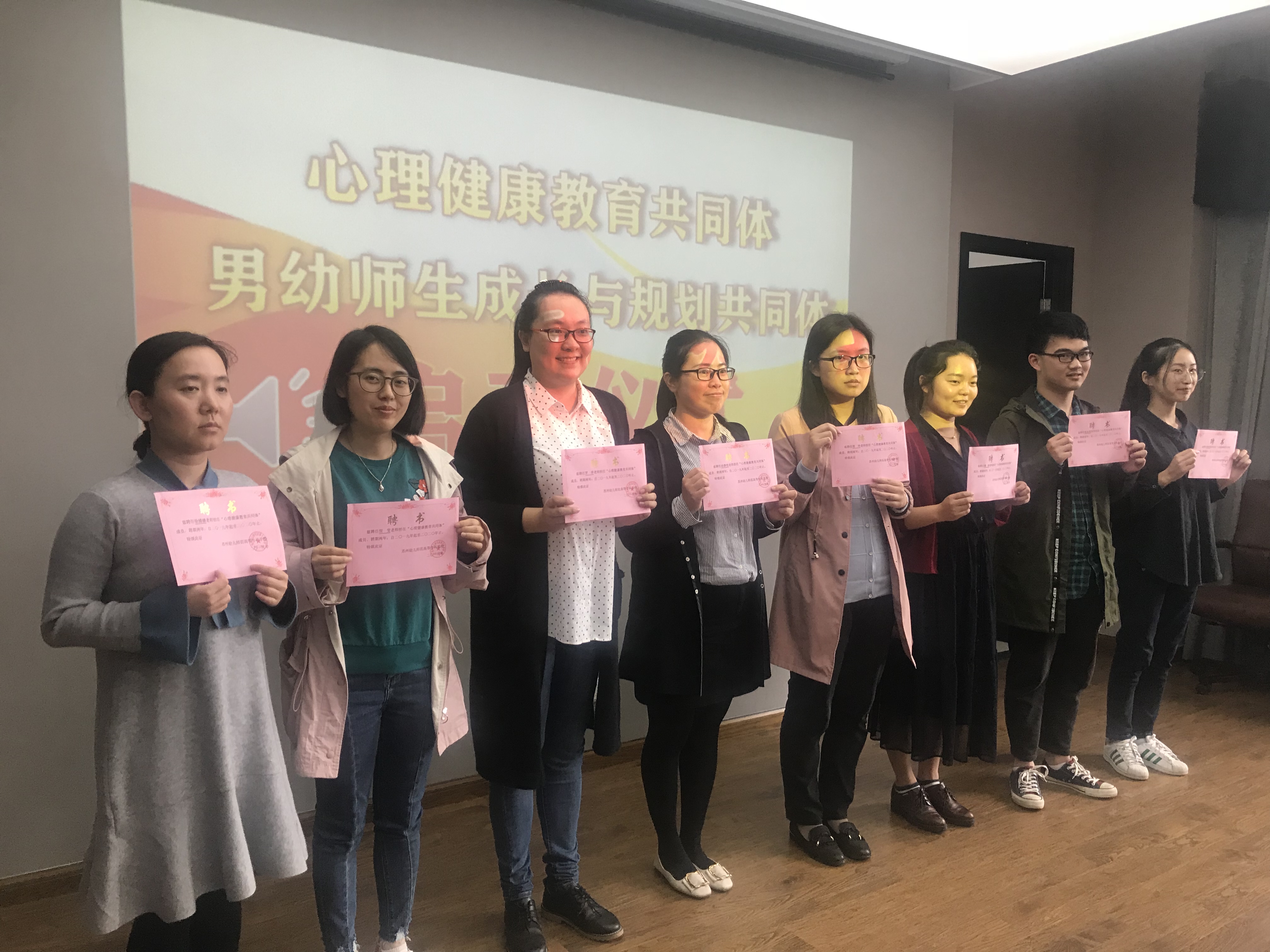 会议首先开展了心理健康教育共同体和男幼师生成长与规划共同体的启动仪式。肖蕾主任讲述了两个共同体的重要性,并宣布两个共同体正式启动,为共同体成员颁发了聘书。