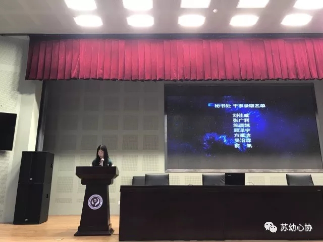新的学年,我会吸引了又一批心理爱好者加入,并且录用了一批青春活力的部门干事。各部门部长在台上向大家宣读了新干事的录用名单以及新学年的工作构想,共同期望苏州幼高专心理健康协会能够继续蓬勃发展。