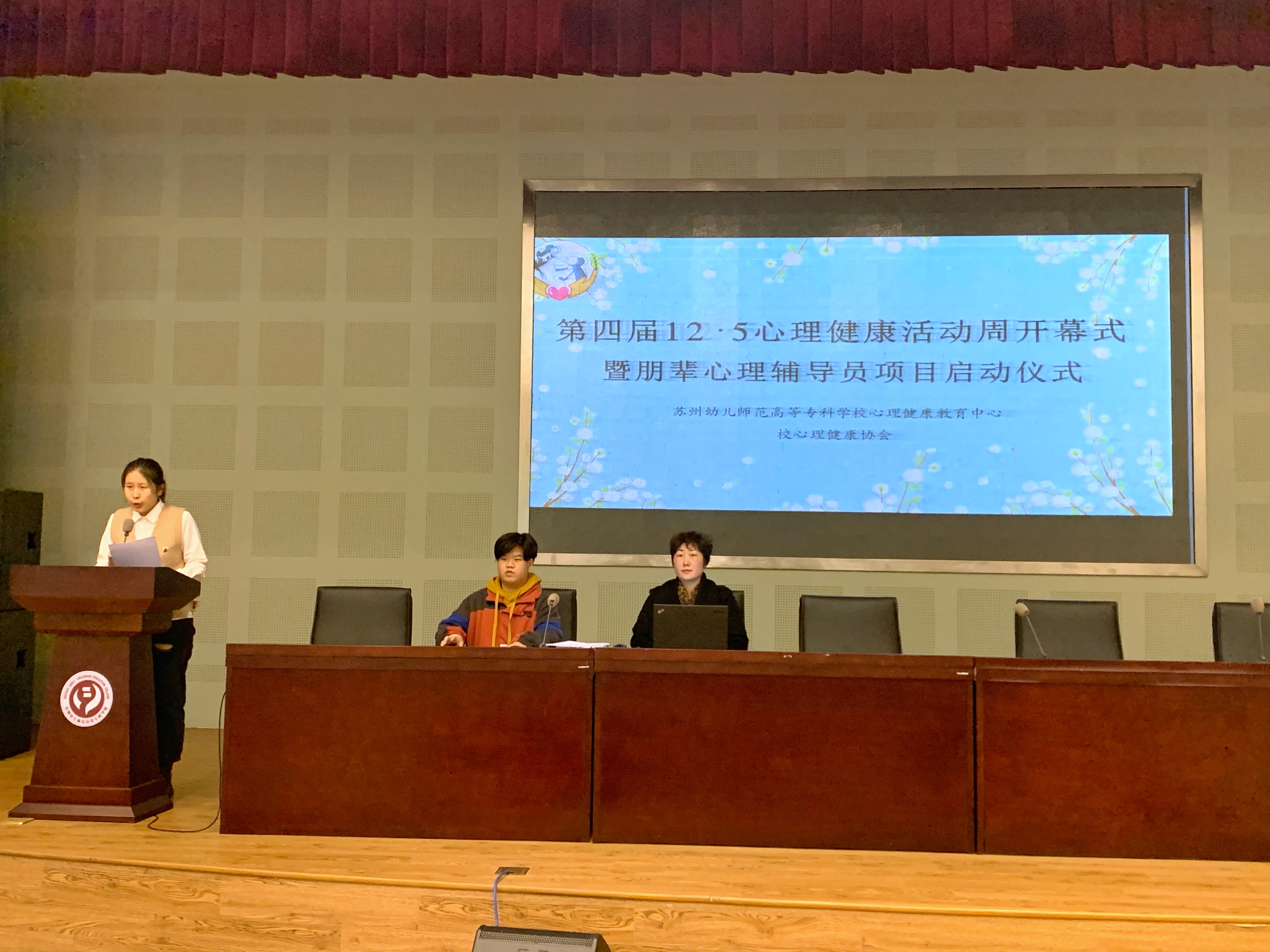 2020年11月23日中午,第四届12.5心理健康周开幕式暨朋辈项目启动仪式在苏州幼专报告厅顺利举行。