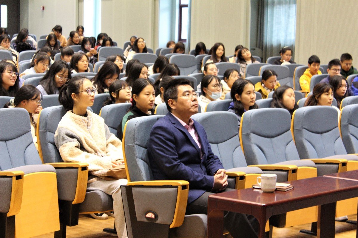 在庄严的宣誓中,一种充满了爱与使命感的暖流在报告厅蔓延开来。此时此刻,所有人的心凝聚在了一起,主动成长与助人成长的渴望在成员心田播种发芽。所有人都有了一个明确的目标——早日从陶校长手里接过“朋辈心理辅导员的认证证书”。现场气氛温暖坚定、欢喜诚挚,主持人李立同学宣布,第四届12.5心理健康周顺利开幕。