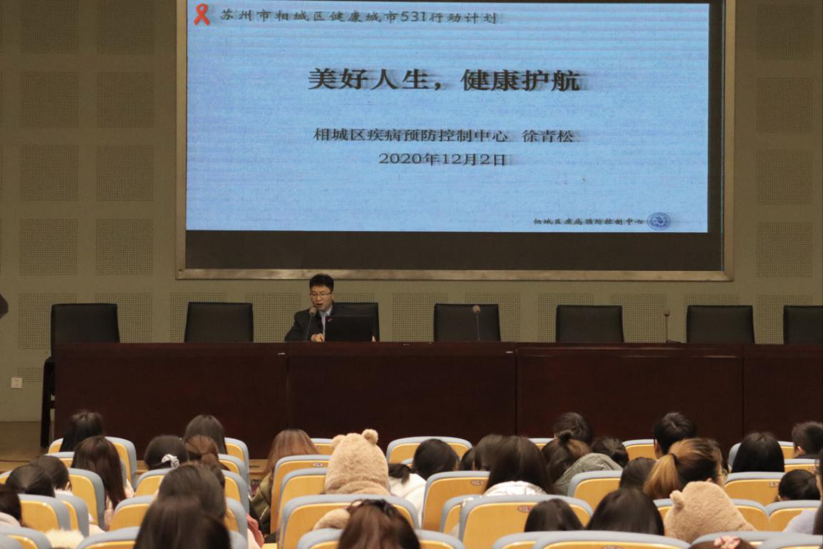 2020年12月2日我校邀请相城区疾病预防控制中心副主任——徐青松医生,为学前二系2019级同学开展了题为“美好人生,健康护航”的防艾知识讲座。徐青松主任用生动的语言与专业的知识,结合相关图文资料,从艾滋病基本知识及预防、不安全性行为的结果、毒品危害及防范三方面进行了讲述。徐主任告诉同学们不要惧怕、也不要歧视艾滋病病人和病毒感染者,提醒同学们要注意防范新型毒品。本次讲座使同学们对艾滋病有了进一步的认识,能够正确科学地看待艾滋病人,可谓受益匪浅。