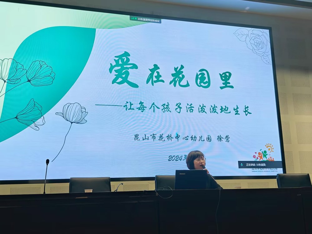 徐园长向同学们介绍了从昆山市花桥中心幼儿园的理念——爱在花园里,让每个孩子活泼泼地生长。昆山市花桥中心幼儿园多次获苏州市儿童友好学校和先进集体等荣誉。徐园长说,幼儿是幼儿园的主体,而昆山市花桥中心幼儿园在徐园长的管理下也做到了这一点。幼儿可以在园内积极地参与体育运动,促进幼儿各方面的发展。徐园长通过视频号的视频与网页链接向我们展示了园内欣欣向荣的生态环境与园内组织的各种丰富的幼儿亲子活动。